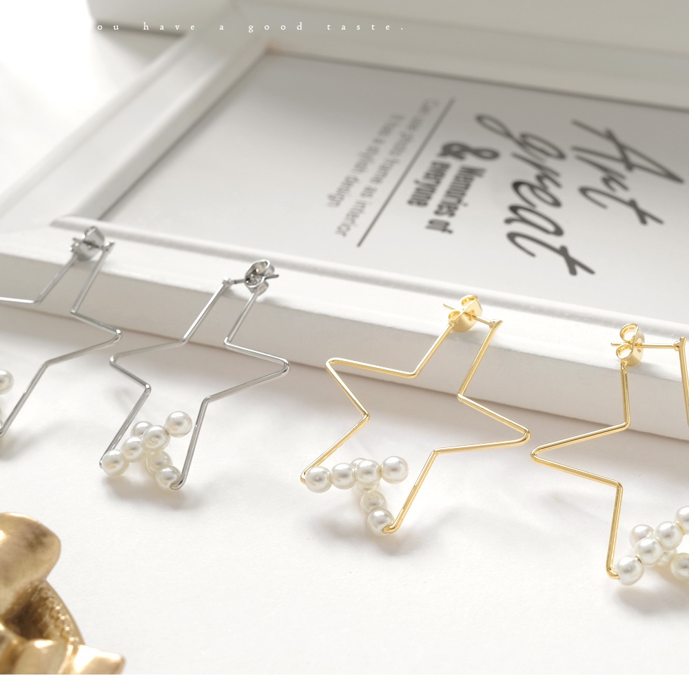 AHUA阿華有事嗎 韓國飾品 縷空星星耳環【A0674】正韓 簡約 珍珠 Ins風 氣質 百搭 韓妞必備 耳針 配件
