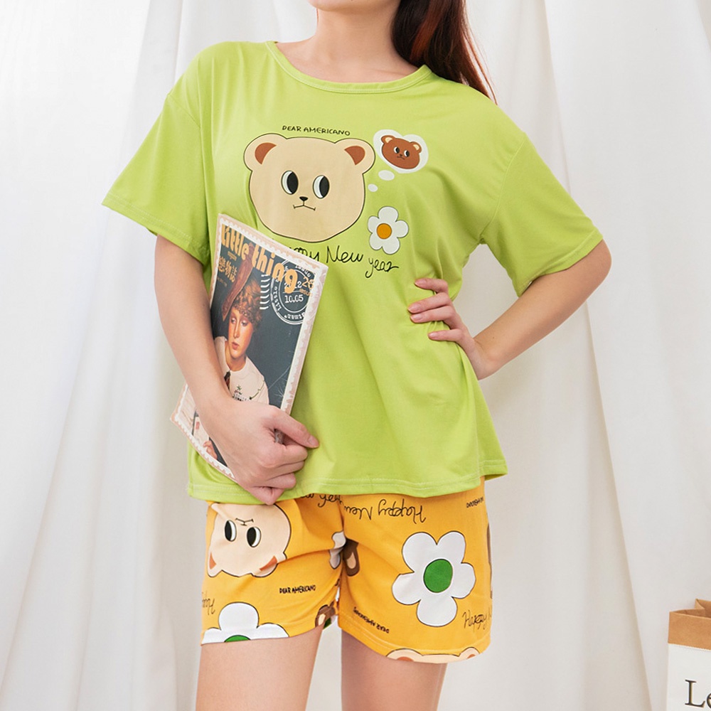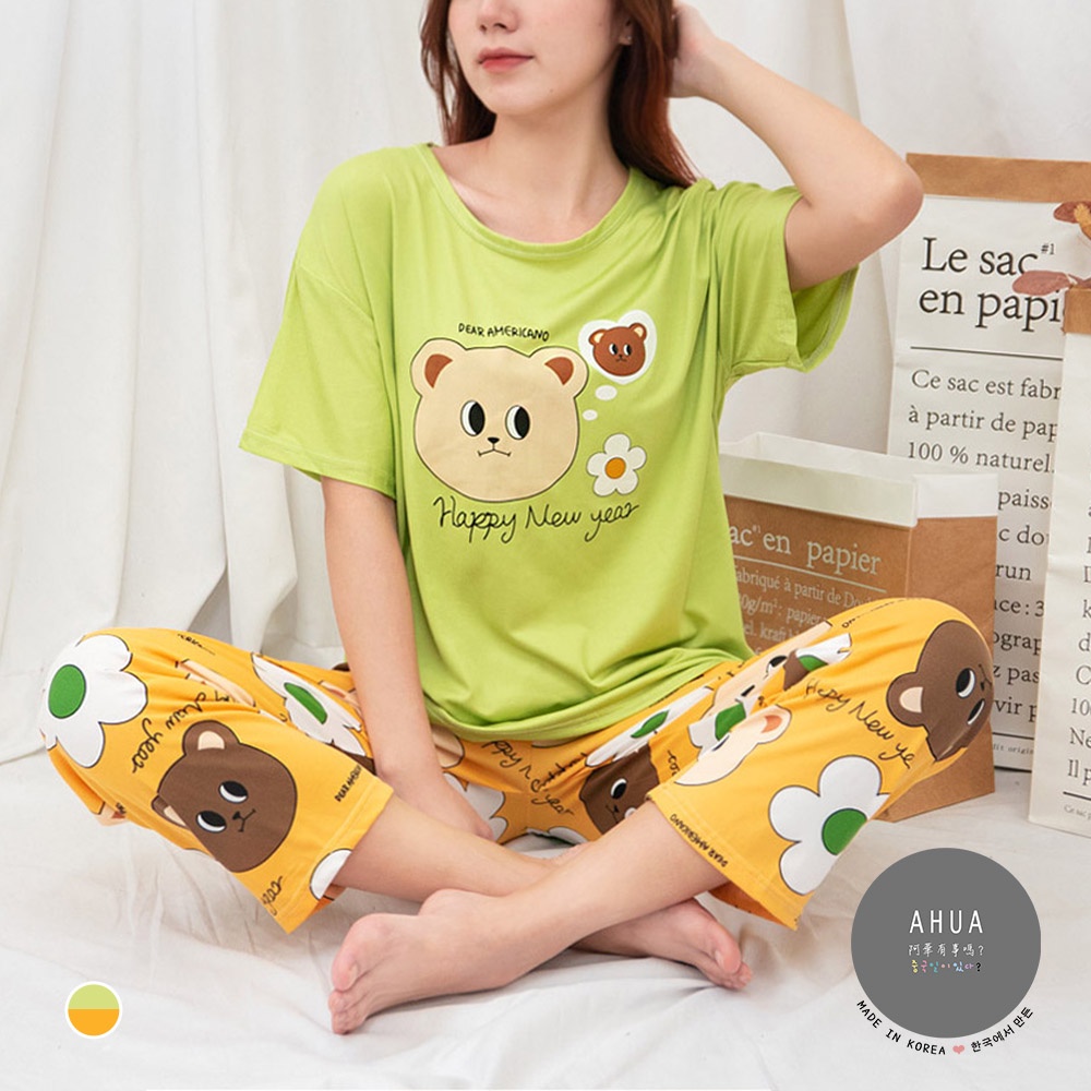 AHUA阿華有事嗎 韓系女裝 棕熊花朵3件組套裝 居家服 睡衣【C2032】睡衣 韓妞必備 百搭顯瘦基本款