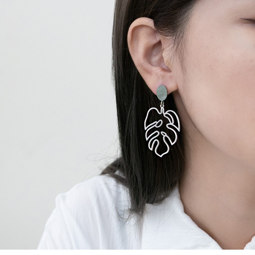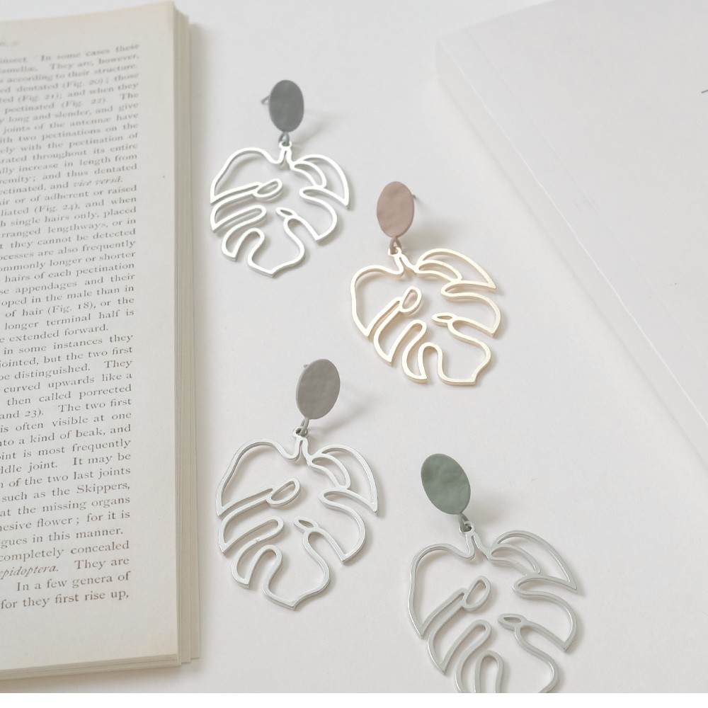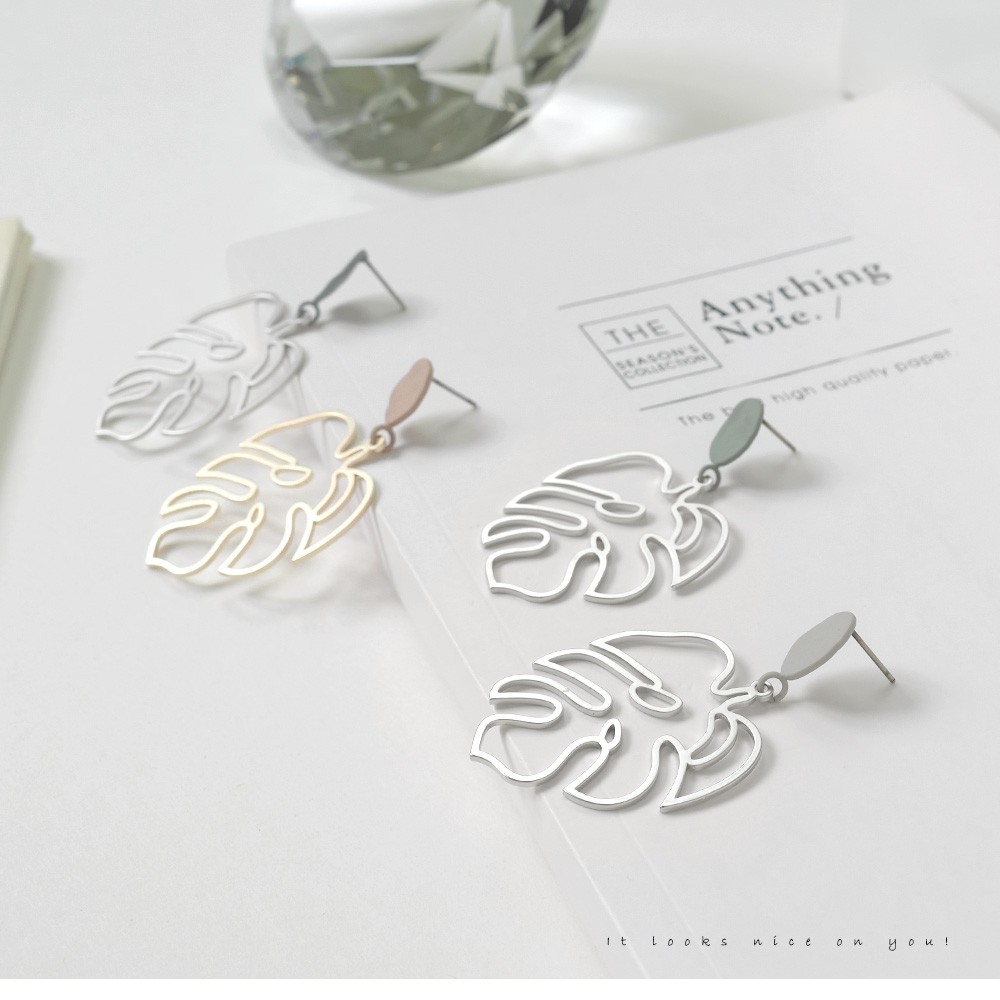 AHUA阿華有事嗎 韓國飾品 霧面縷空龜背葉耳環【A0755】正韓 Ins風 氣質 時尚 簡約 百搭 韓妞必備 耳針耳環