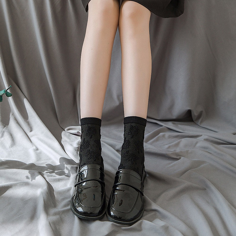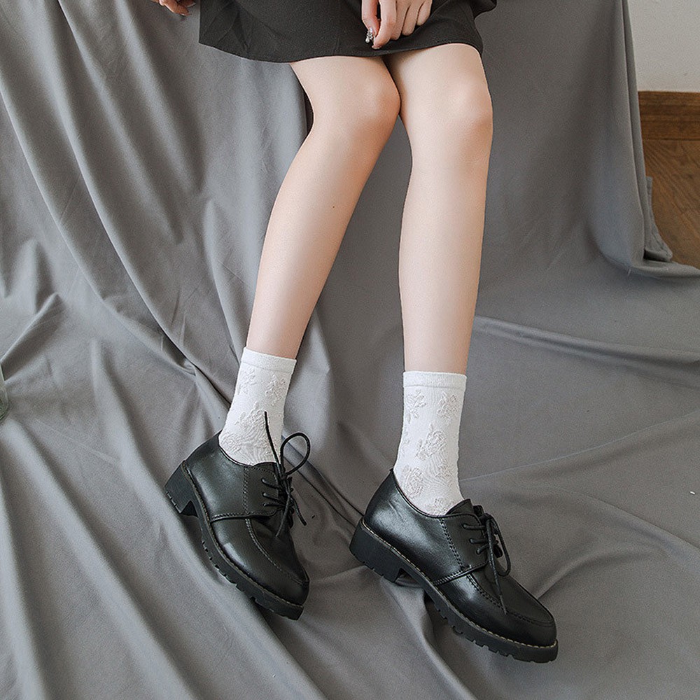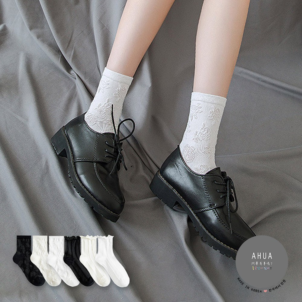 阿華有事嗎AUHA 日系襪子 古典立體花紋中筒襪【S0383】少女襪 韓妞必備長襪 百搭純棉襪