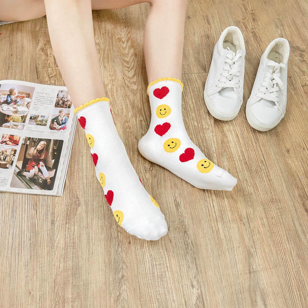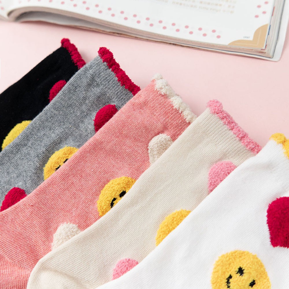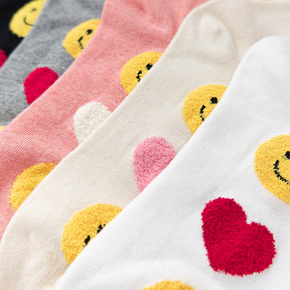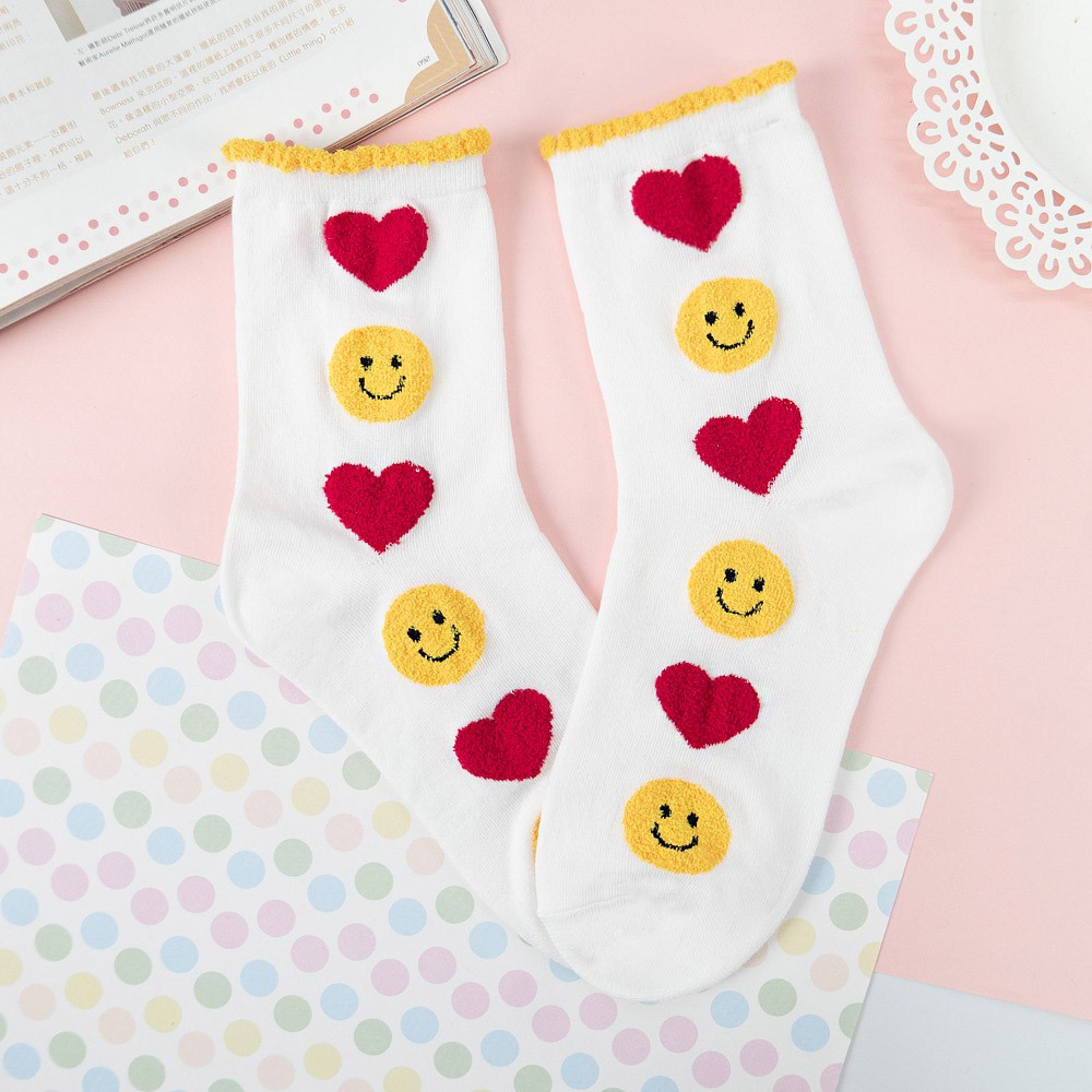 AUHA阿華有事嗎 韓國襪子 毛毛側邊直條愛心笑臉中筒襪【K1272】少女襪 百搭純棉襪