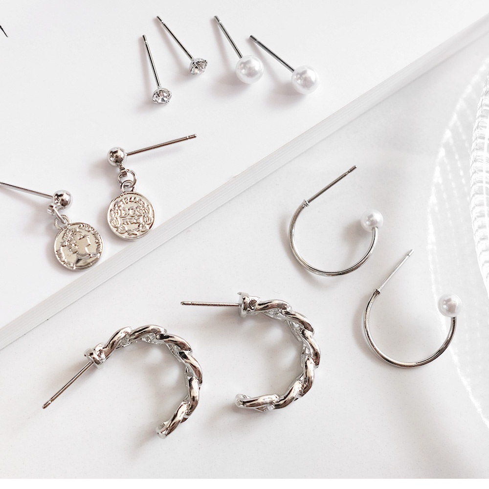 AHUA阿華有事嗎 韓國飾品 硬幣珍珠耳環10入組【A0078】正韓 時尚 簡約 浪漫 C圈 韓妞必備 百搭 基本款耳針