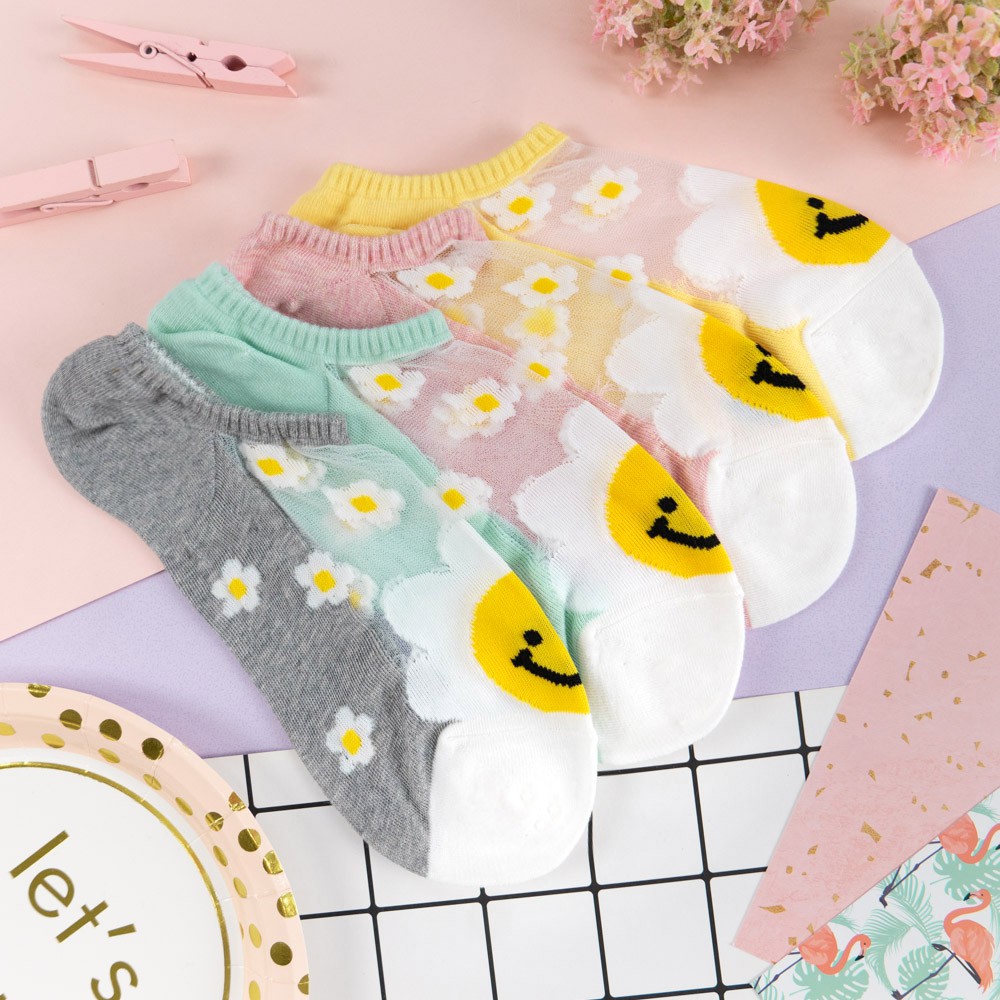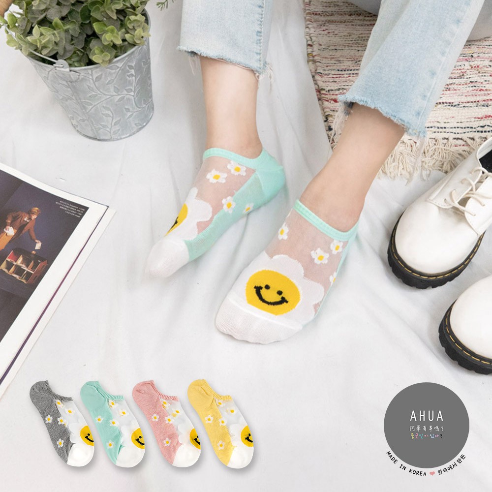 阿華有事嗎AUHA 韓國襪子 透膚滿版花朵微笑船型襪【K1190】 少女襪 韓妞必備長襪 百搭純棉襪