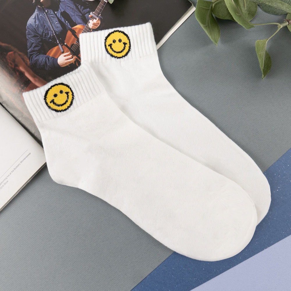 AUHA阿華有事嗎 韓國襪子 襪口笑臉純色男生短襪 男襪【K1230】 百搭純棉襪