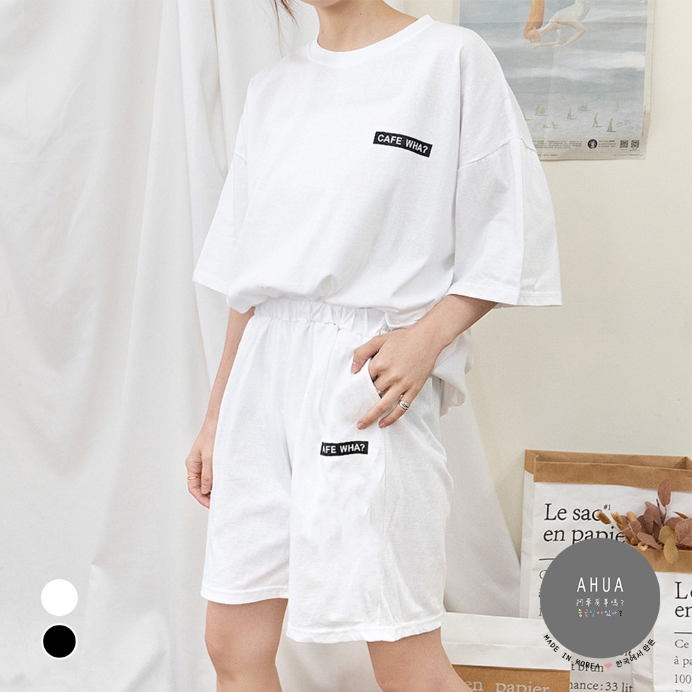 AHUA阿華有事嗎 韓國女裝 街頭風復古照片短袖套裝【C1952】 韓妞必備 百搭顯瘦基本款