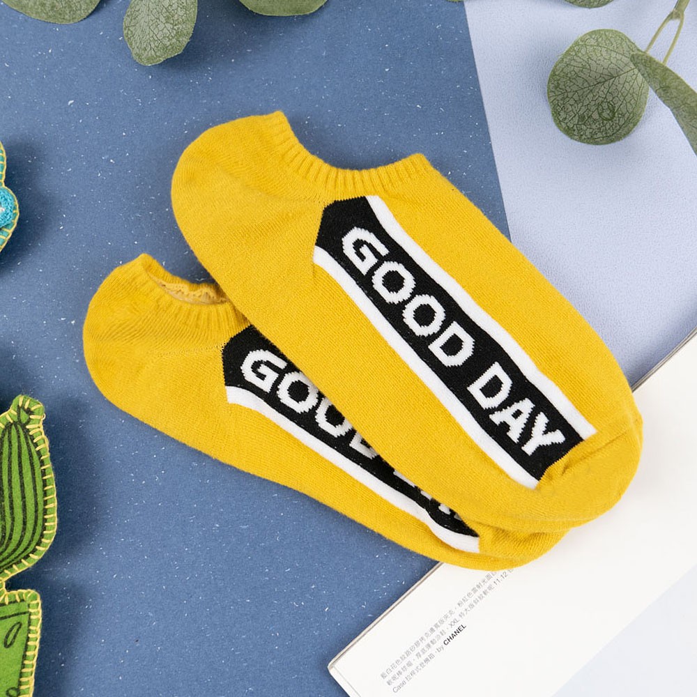 阿華有事嗎AUHA 韓國襪子 側邊直條GOOD DAY船型襪【K1122】 少女襪 韓妞必備長襪 百搭純棉襪