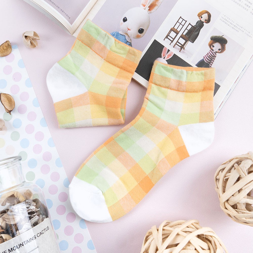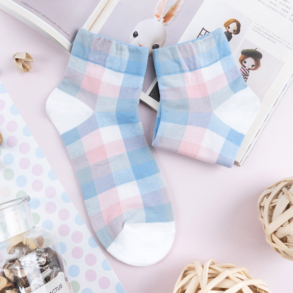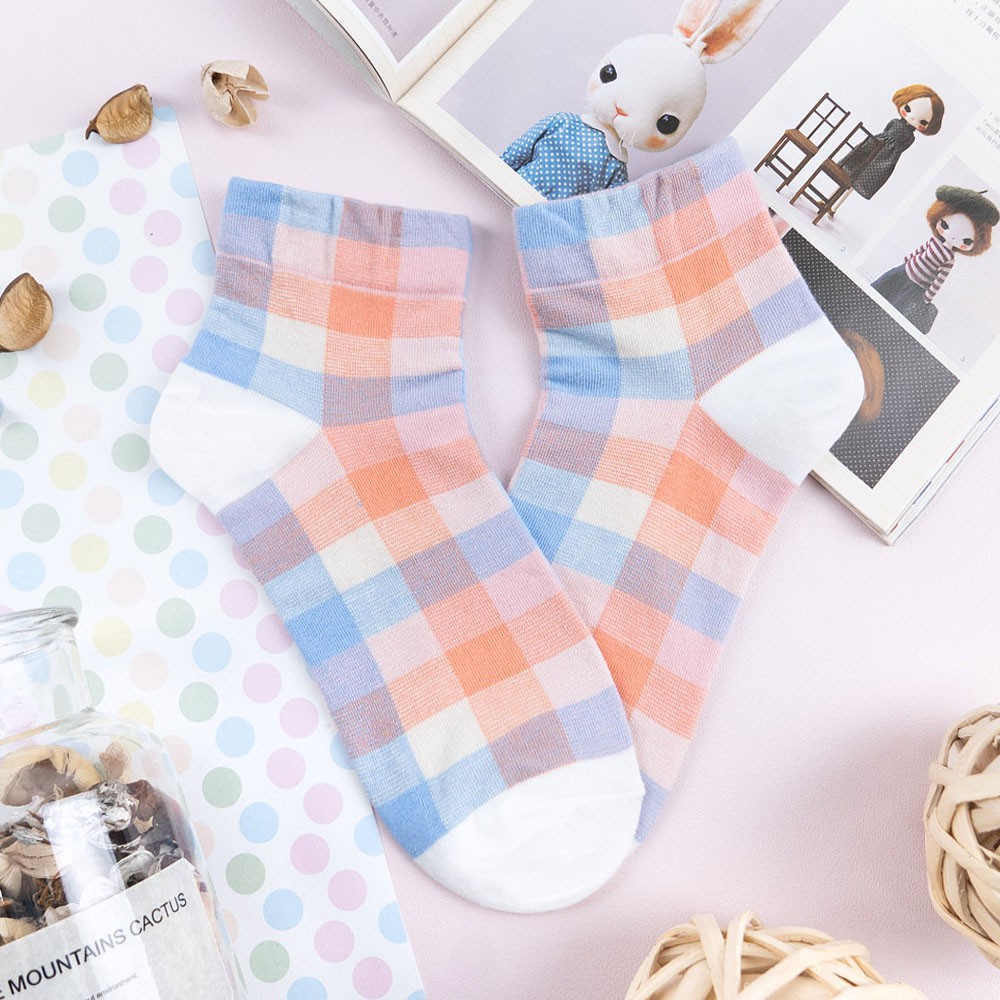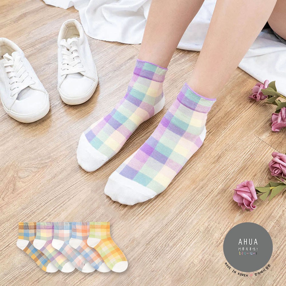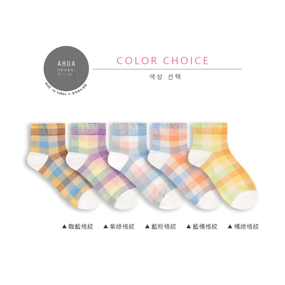 阿華有事嗎AUHA 韓國襪子 粉嫩拼色格紋中短襪【K1169】 少女襪 韓妞必備長襪 百搭純棉襪