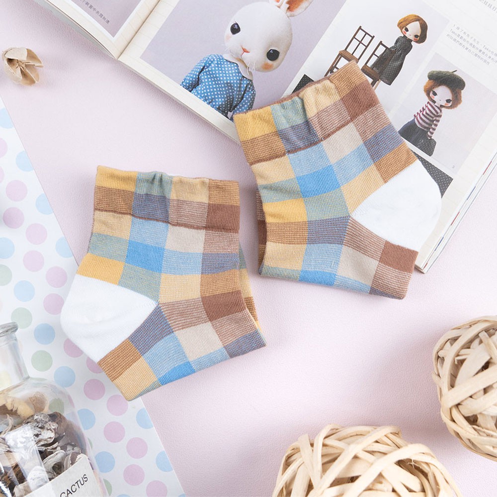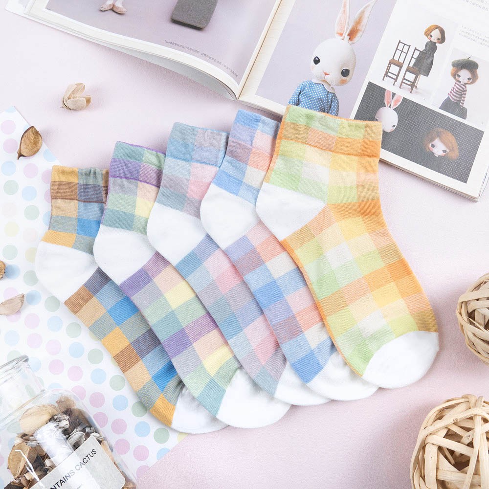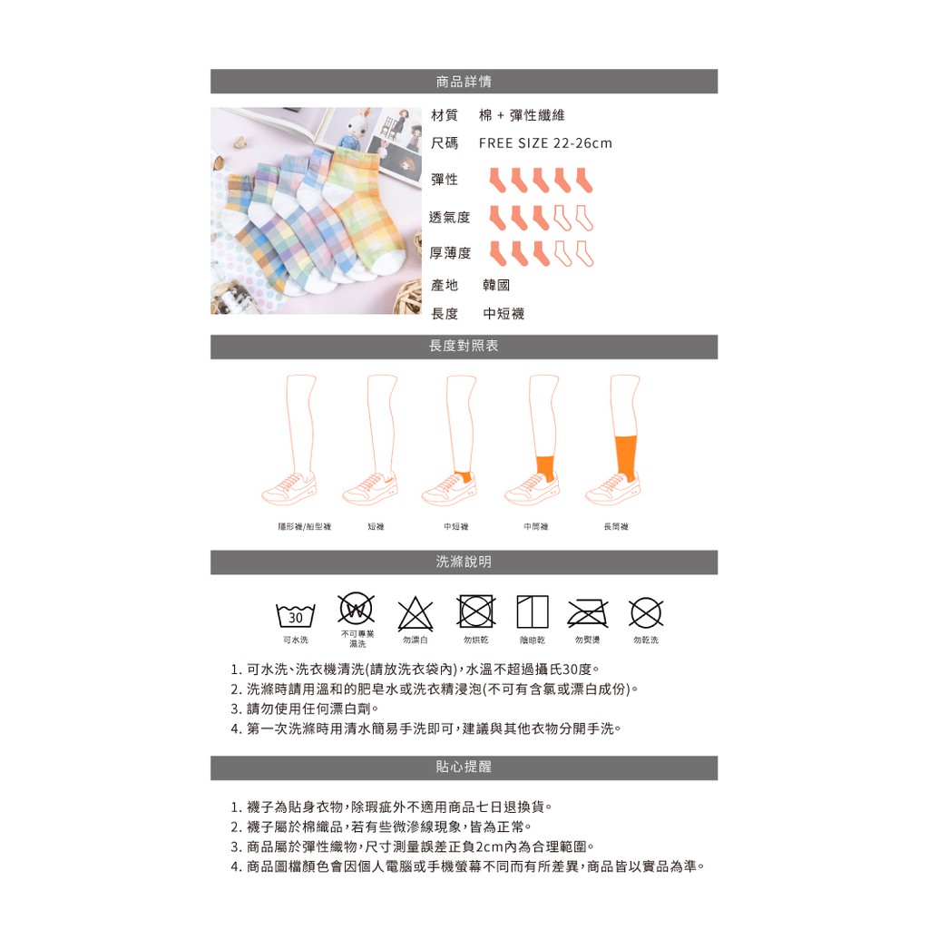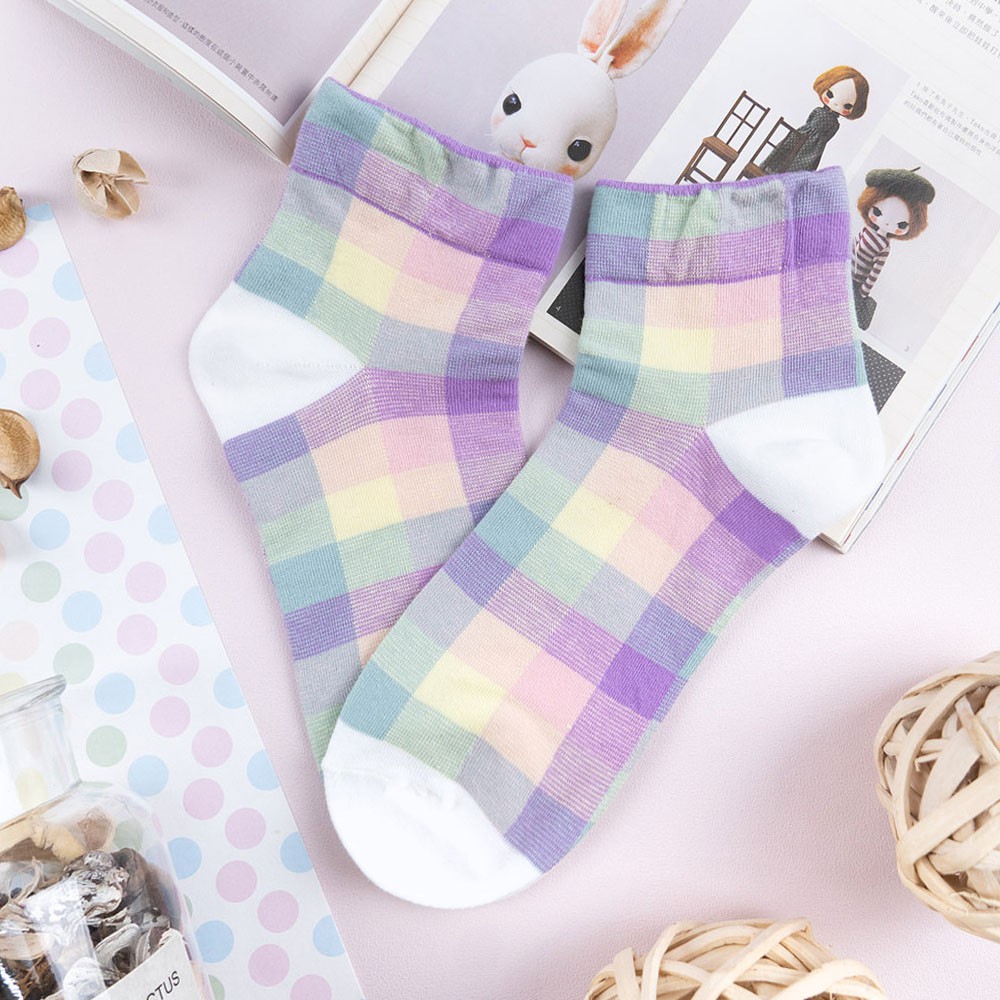 阿華有事嗎AUHA 韓國襪子 粉嫩拼色格紋中短襪【K1169】 少女襪 韓妞必備長襪 百搭純棉襪