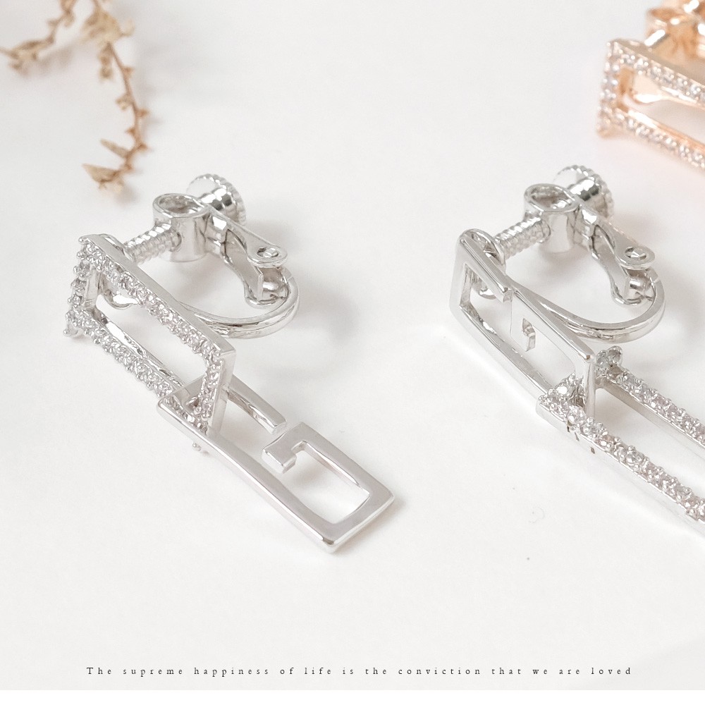 AUHA阿華有事嗎 韓國飾品 鑲鑽垂墜字母夾式耳環【A0625】正韓 Ins風 氣質 百搭 墜式 耳夾 無耳洞 水鑽