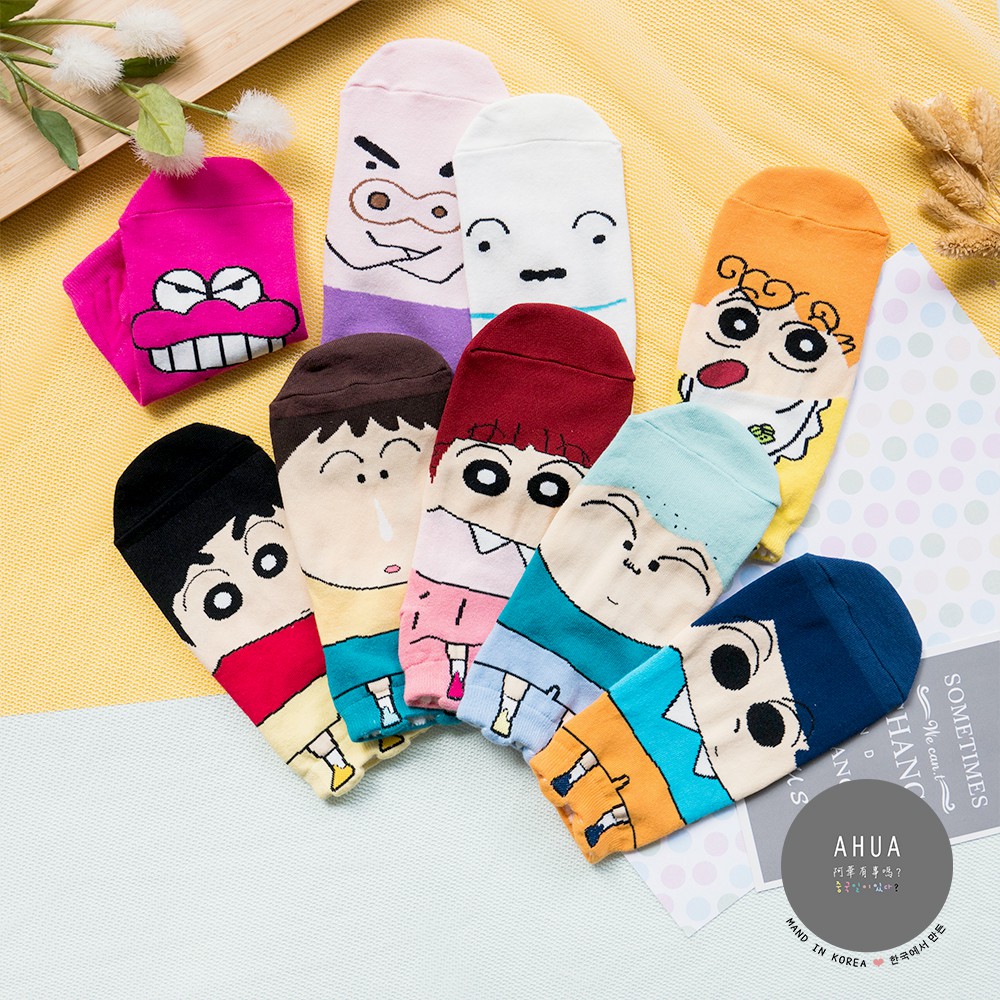 AHUA阿華有事嗎 韓國襪子 蠟筆小新全版短襪 K0299 正韓少女襪 韓妞必備 百搭熱賣爆款 卡通襪