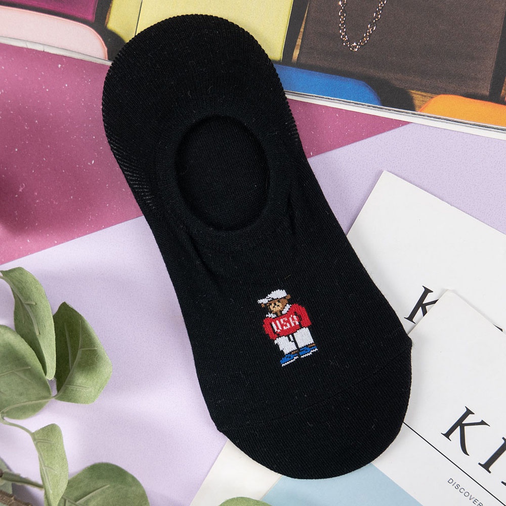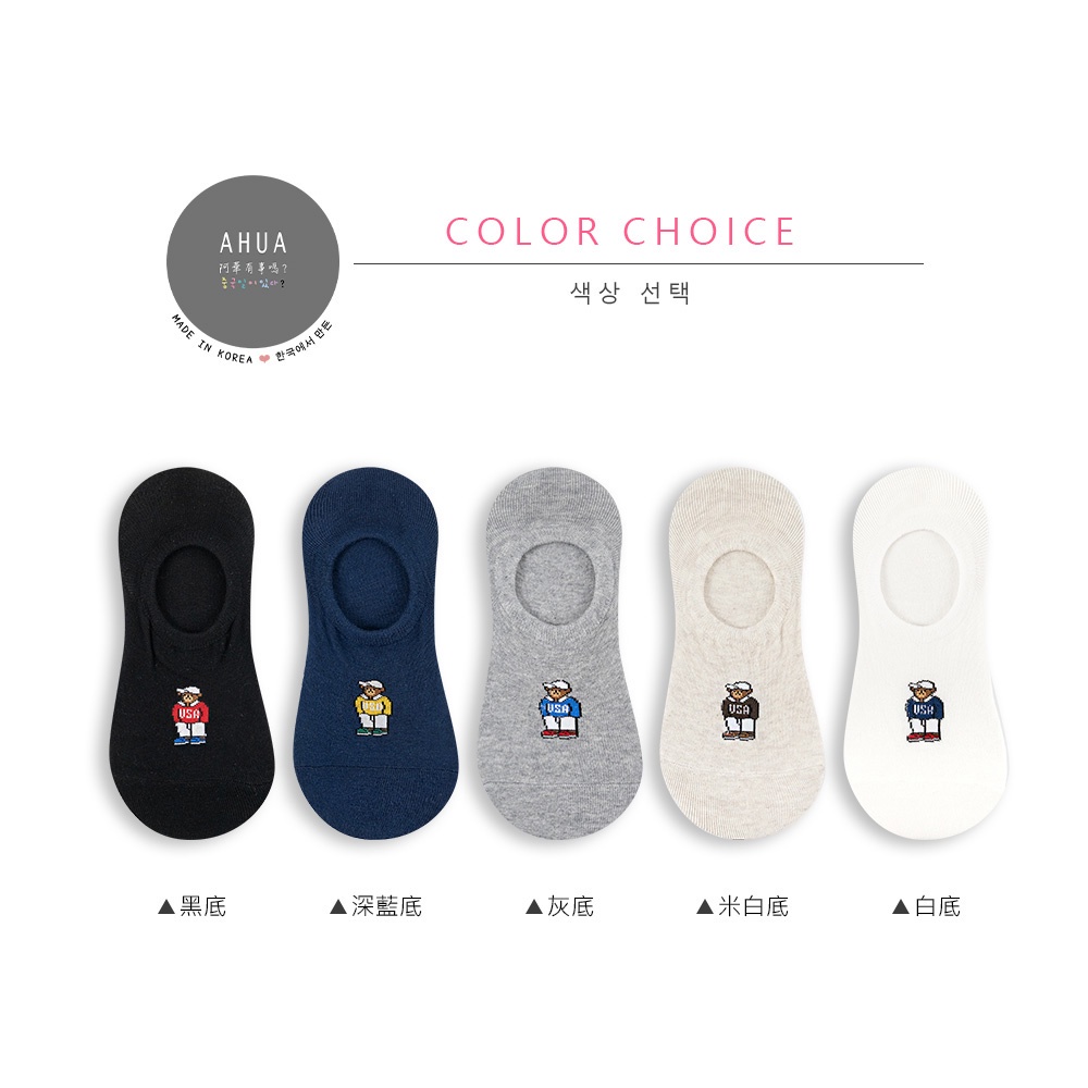 AUHA阿華有事嗎 韓國襪子 USA戴帽子小熊隱形襪【K1252】 韓妞必備 百搭純棉襪