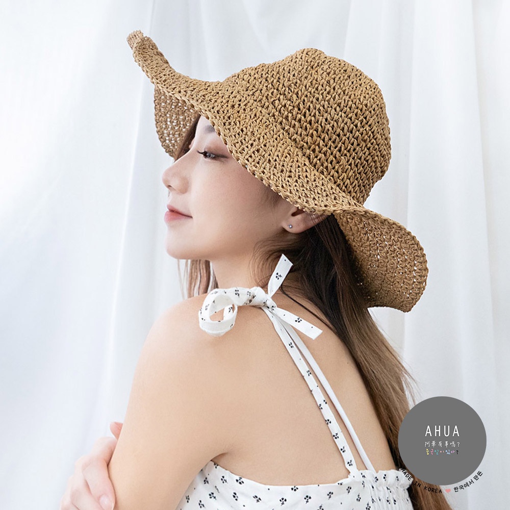 AHUA阿華有事嗎 韓系女裝配件 可折叠遮陽草帽【H0028】遮陽 防曬 草帽 夏日 透氣 韓妞必備 百搭基本款