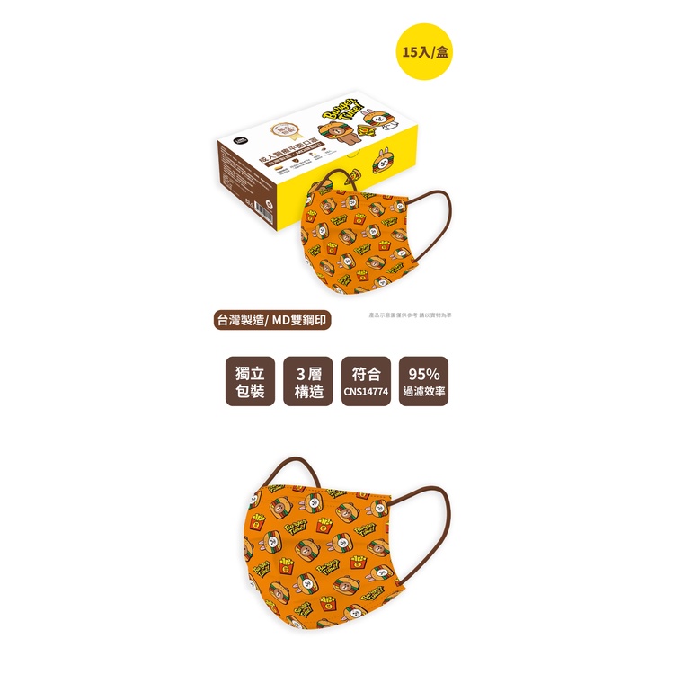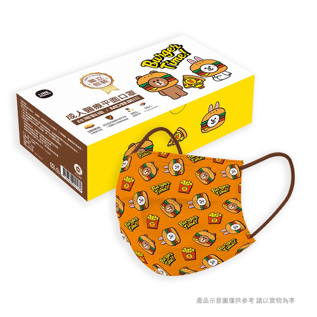 台灣康匠 LINE FRIENDS漢堡系列 成人醫療口罩【P0009】成人 MD雙鋼印 醫療口罩 AUHA阿華有事嗎