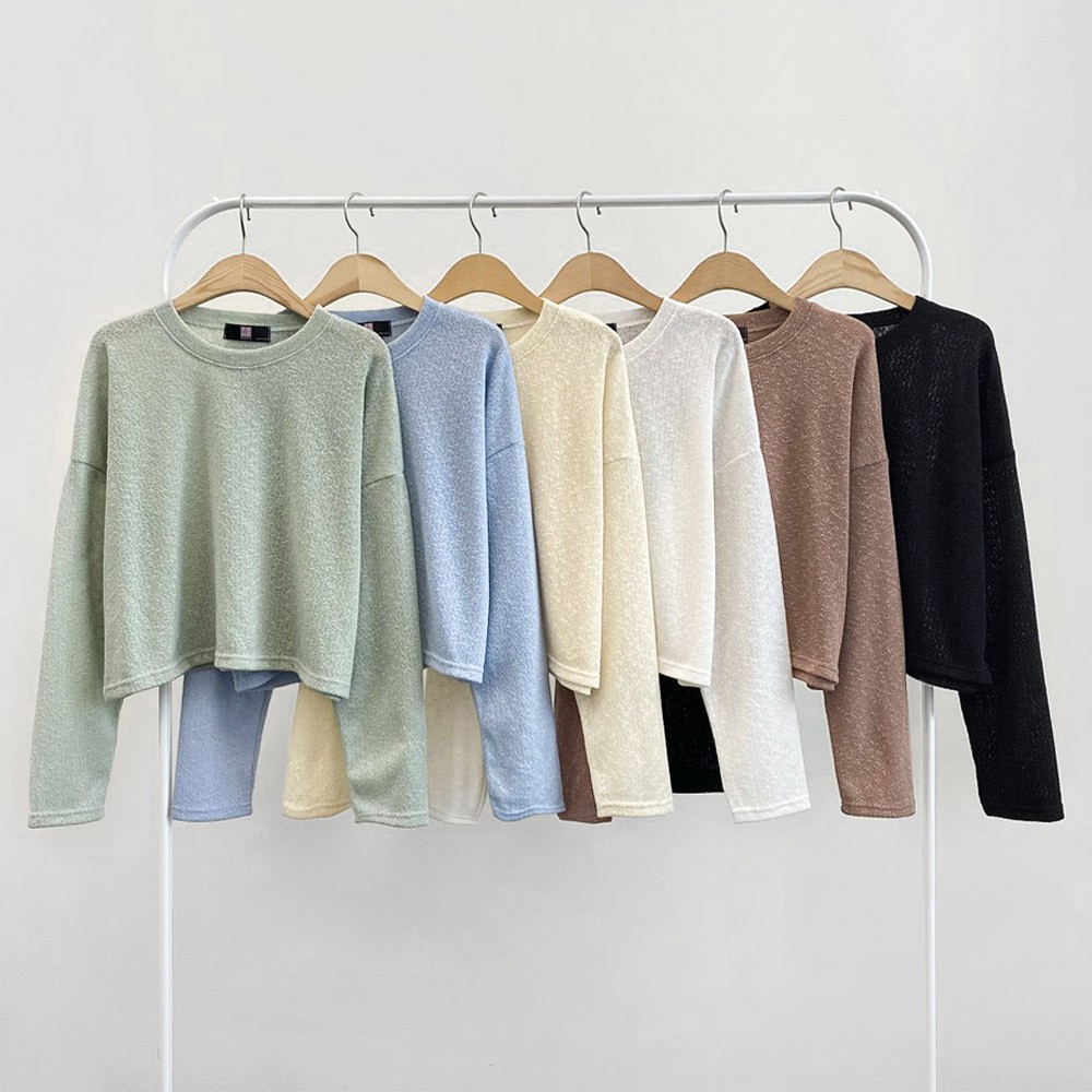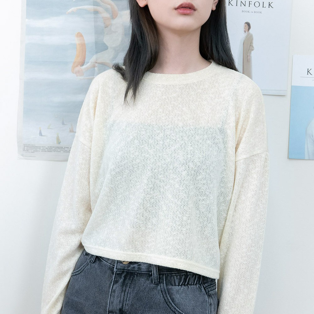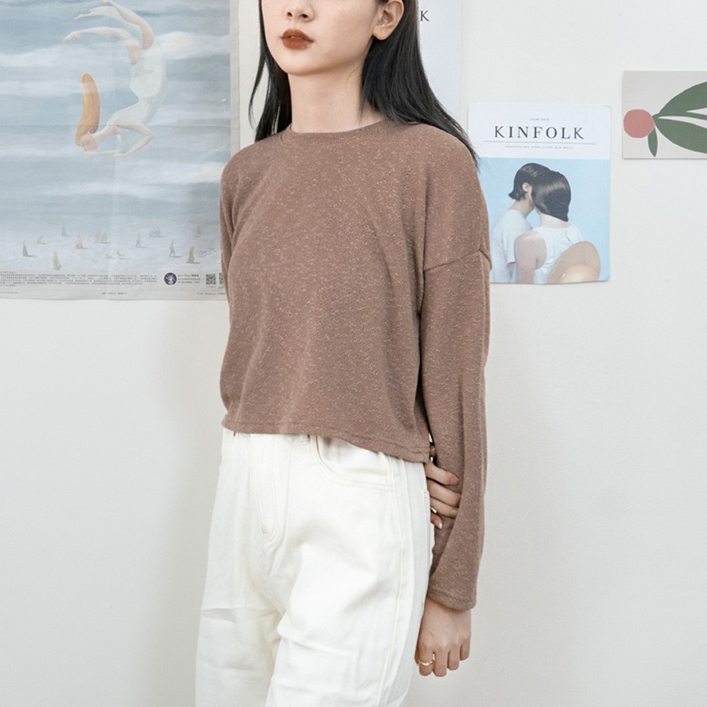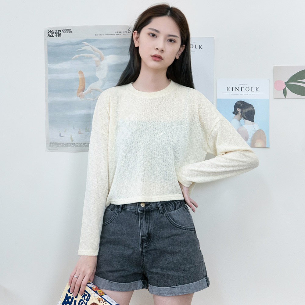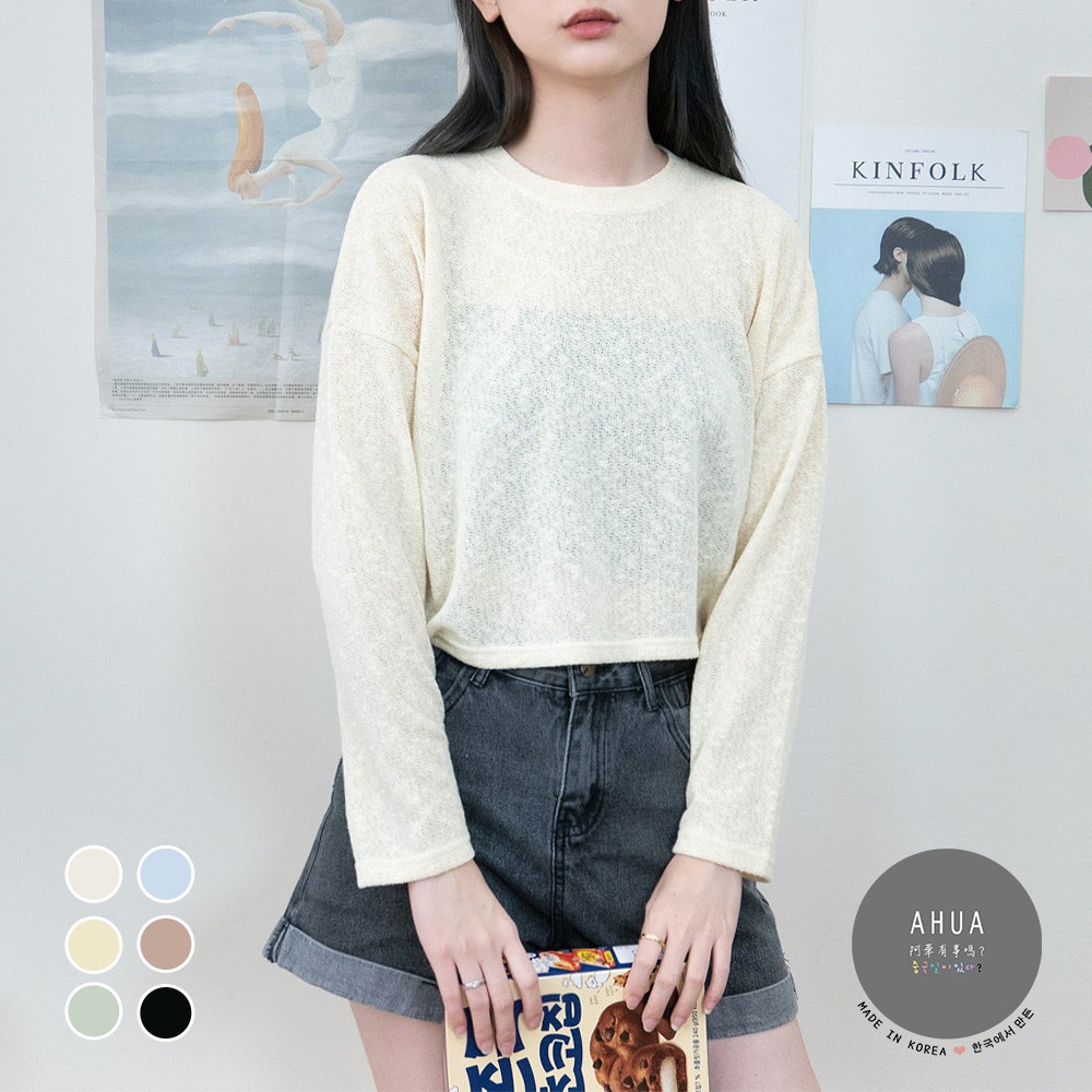 AHUA阿華有事嗎 韓國女裝 純色針織長袖上衣【C2164】素色 透膚 簡約 短版 韓妞必備 百搭基本款