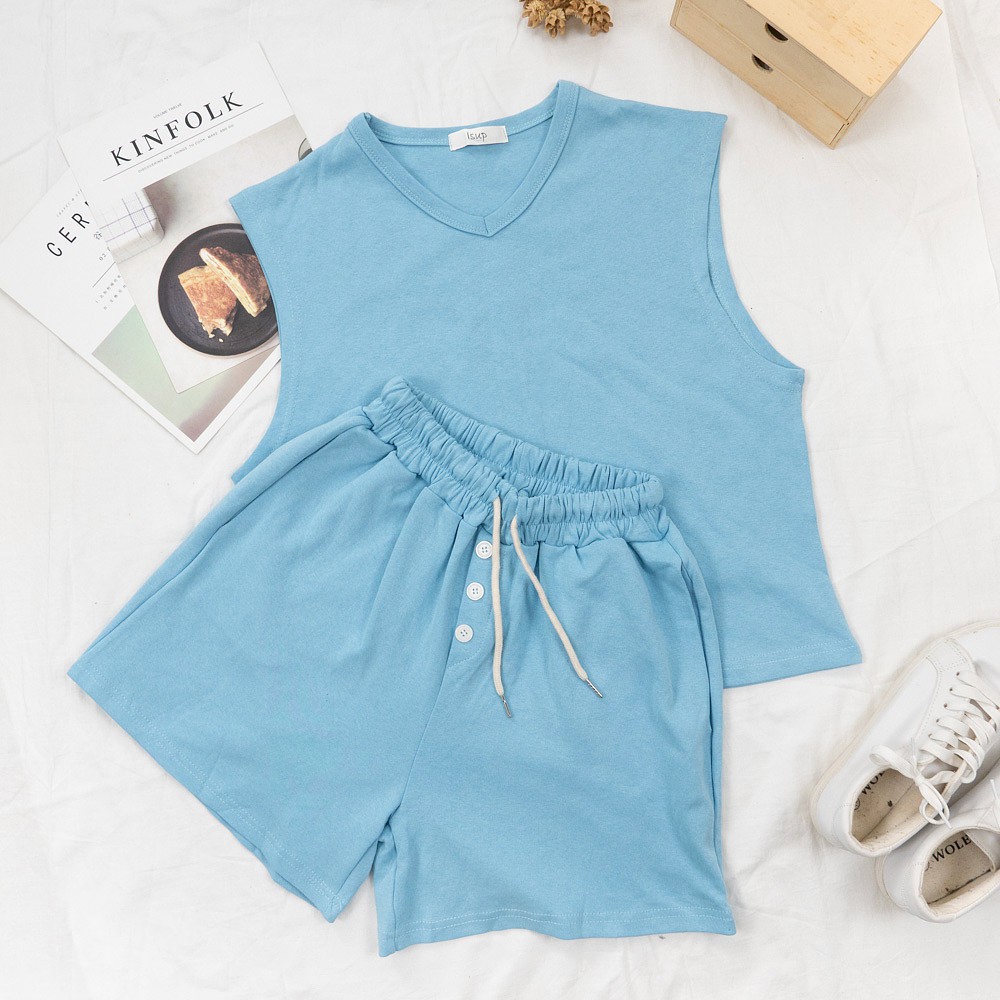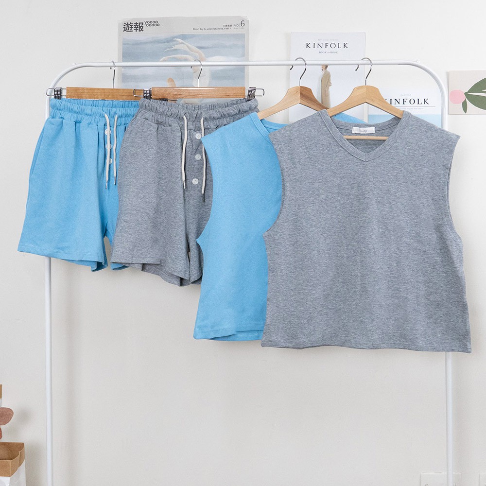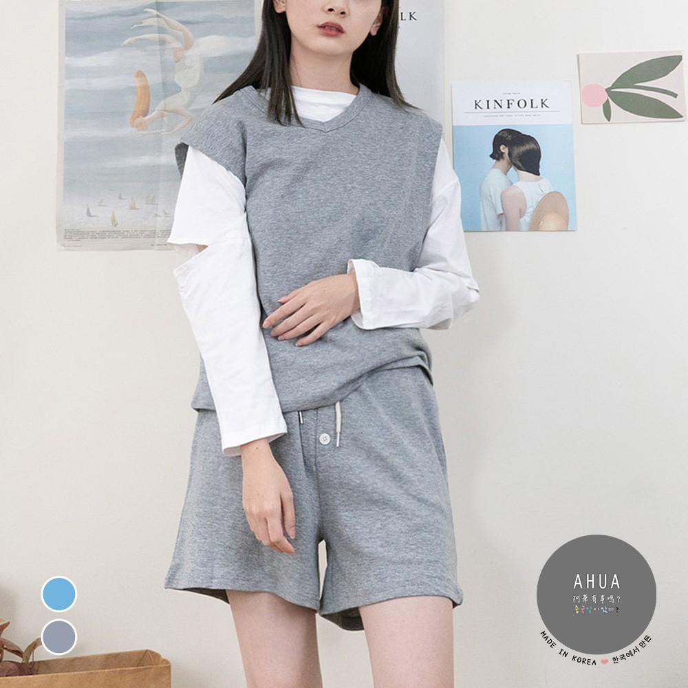 AHUA阿華有事嗎 韓系女裝 寬鬆V領背心休閒套裝【C2148】韓妞必備 百搭基本款