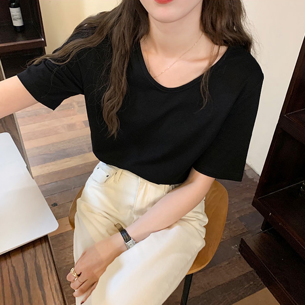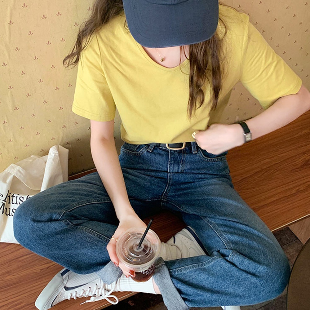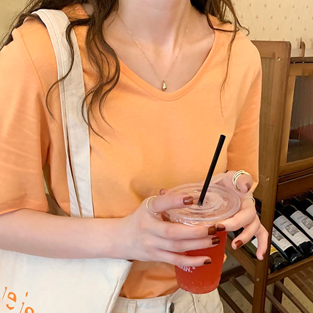 AHUA阿華有事嗎 韓系女裝 打底V領短袖短版/長版T恤【C2365】可愛 休閒 純色 短袖上衣 百搭 韓妞必備 基本款
