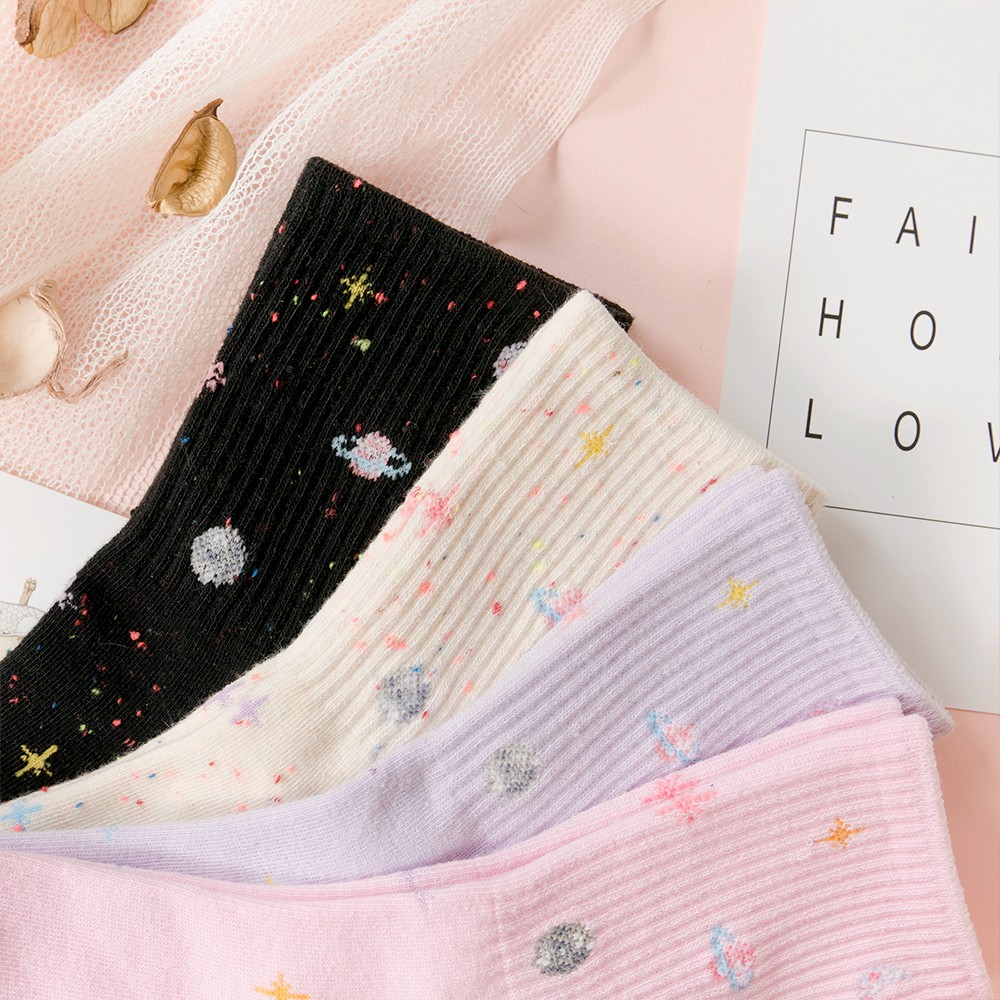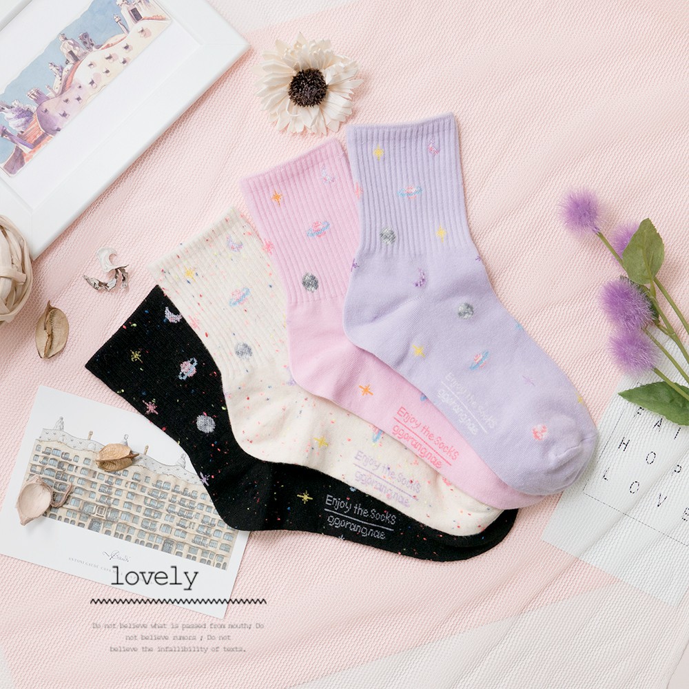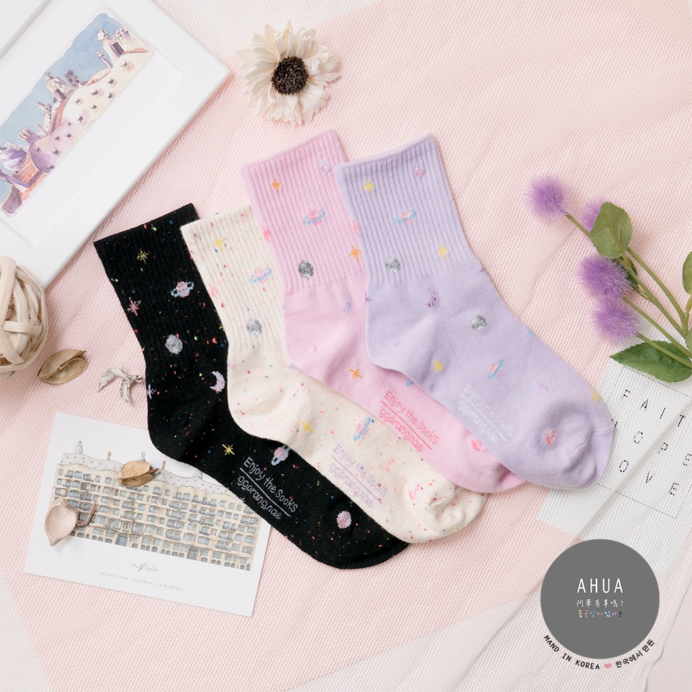 AHUA阿華有事嗎 韓國襪子 粉嫩浪漫星球中筒襪 K0323 正韓熱賣爆款 韓妞必備長襪 百搭純棉襪 素色襪子