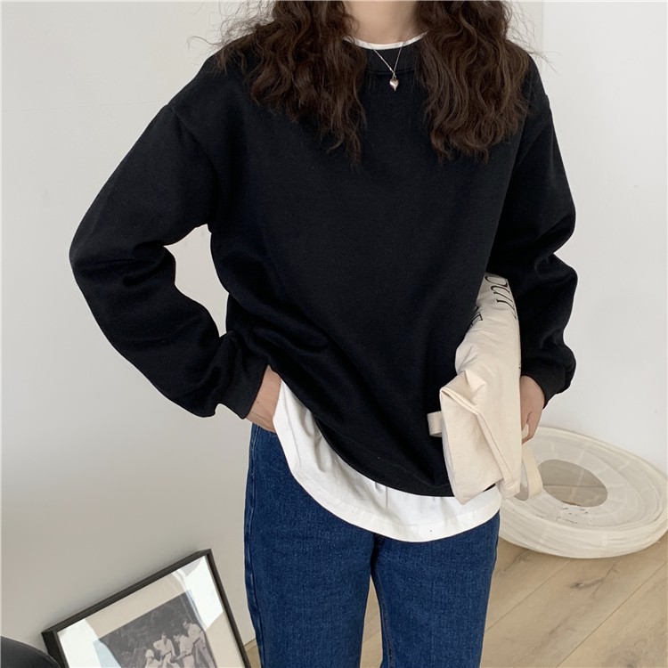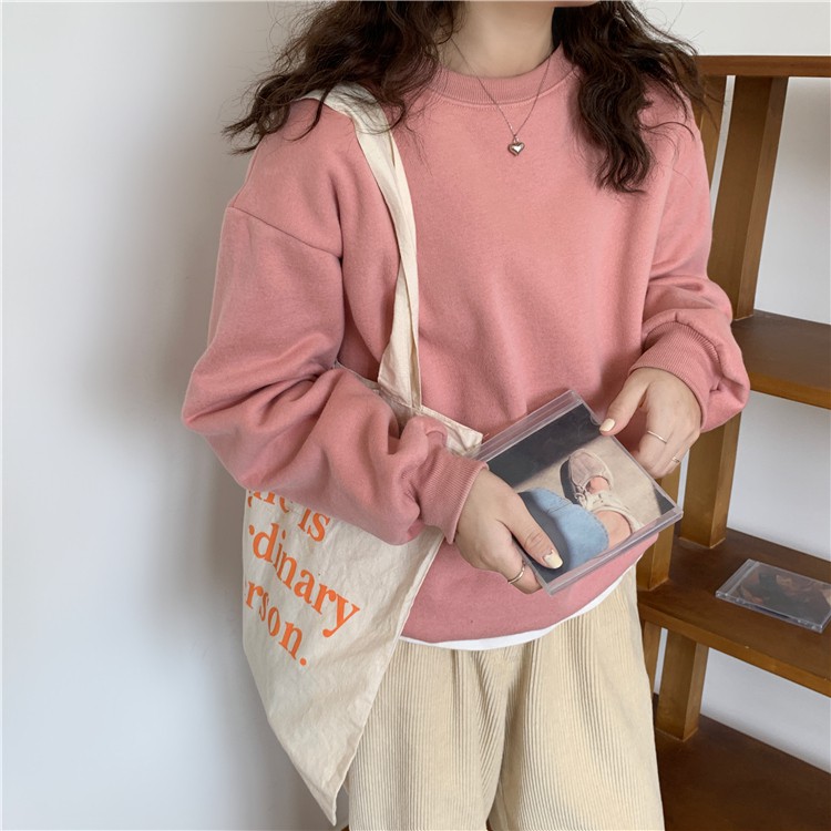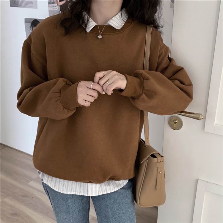 AHUA阿華有事嗎 韓系女裝 糖果色落肩加絨長袖大學T【C1569】百搭基本款