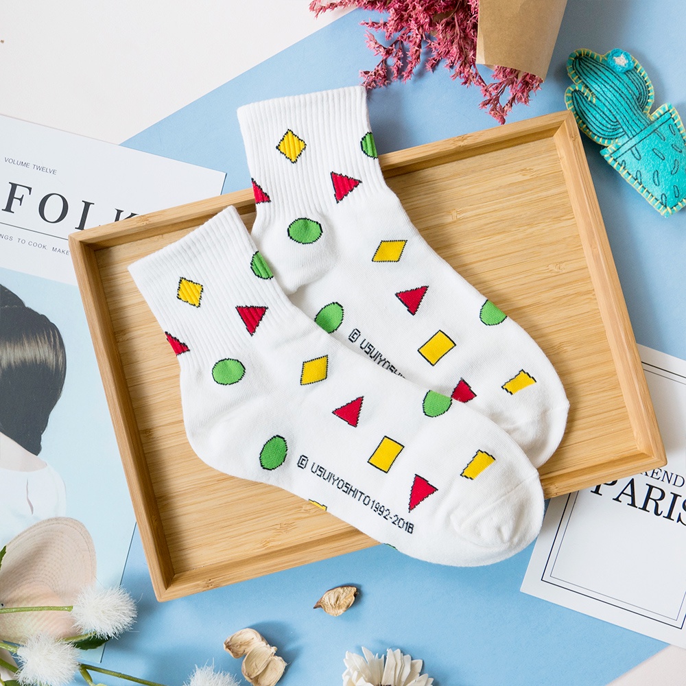AHUA 韓國襪子 蠟筆小新睡衣圖案中筒襪 K0354 現貨 女生襪子 女襪 卡通襪 蠟筆小新襪子 白襪 阿華有事嗎