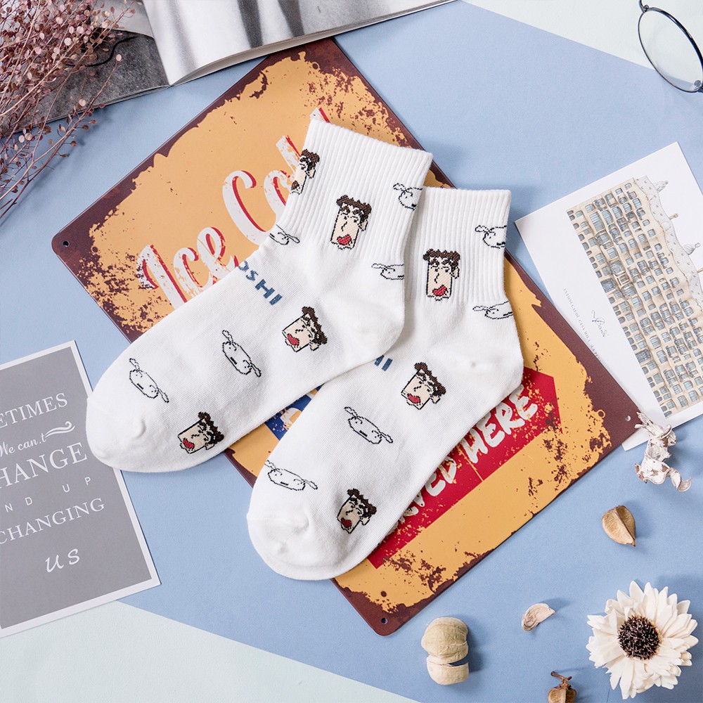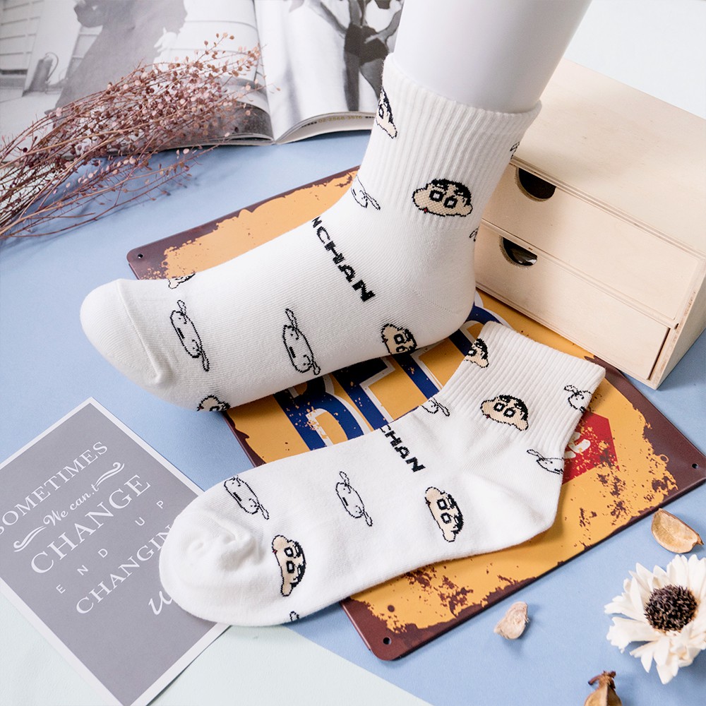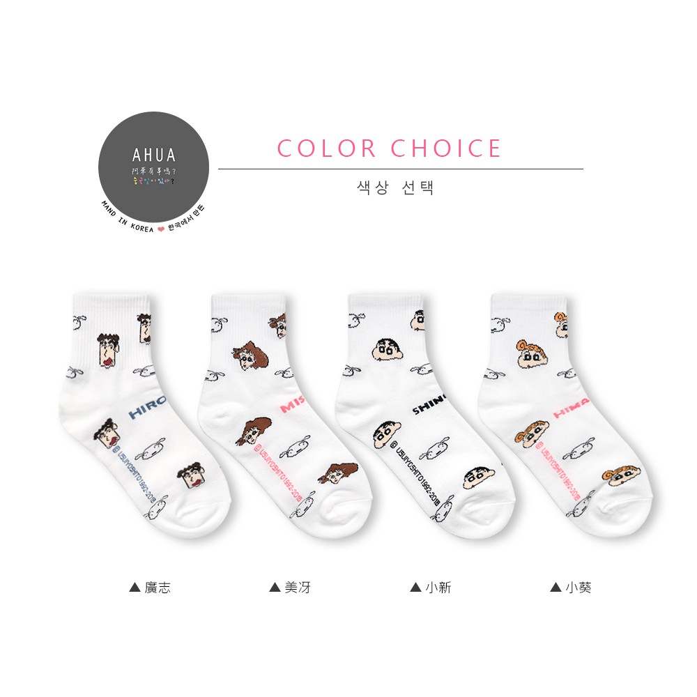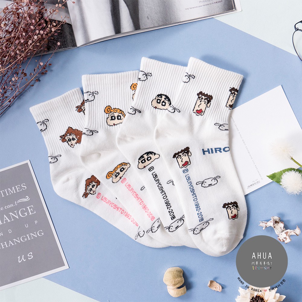 AHUA阿華有事嗎 韓國襪子 蠟筆小新一家人中筒襪 K0355 正韓熱賣款 韓妞必備長襪 百搭純棉襪 素色襪子