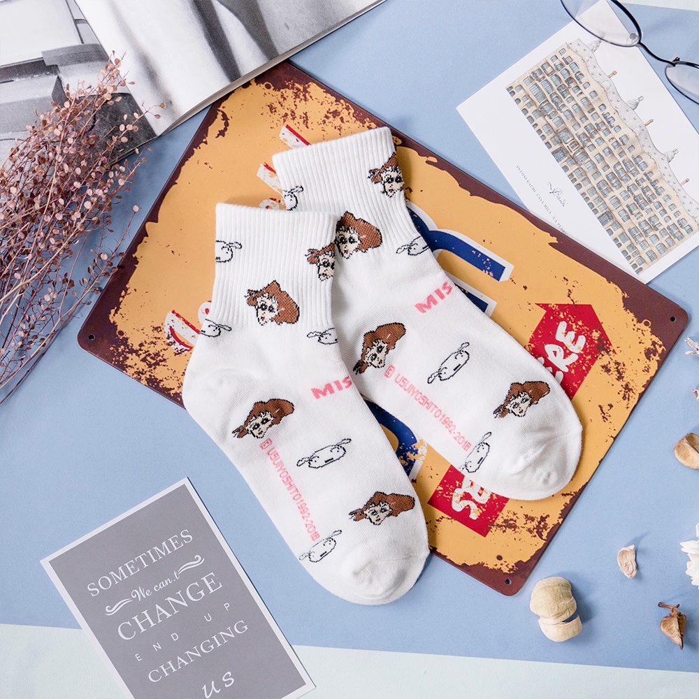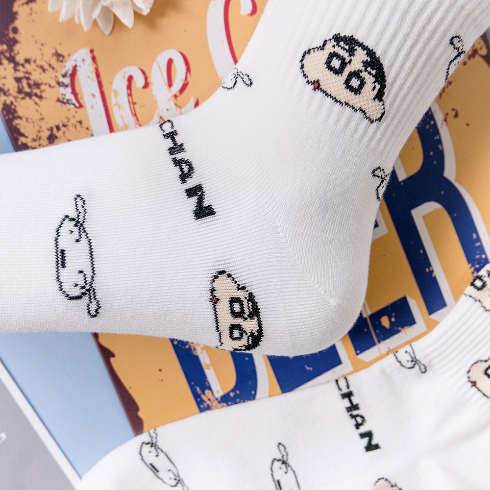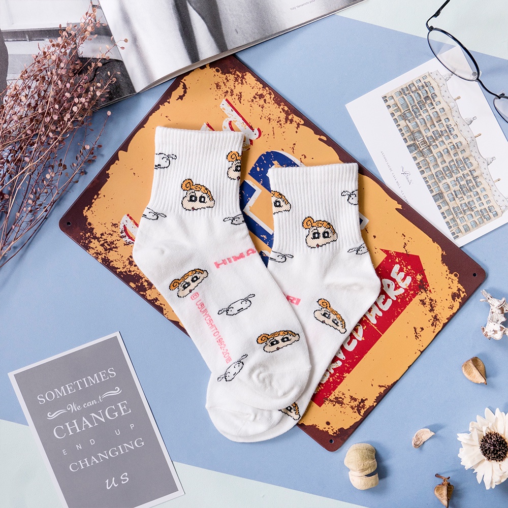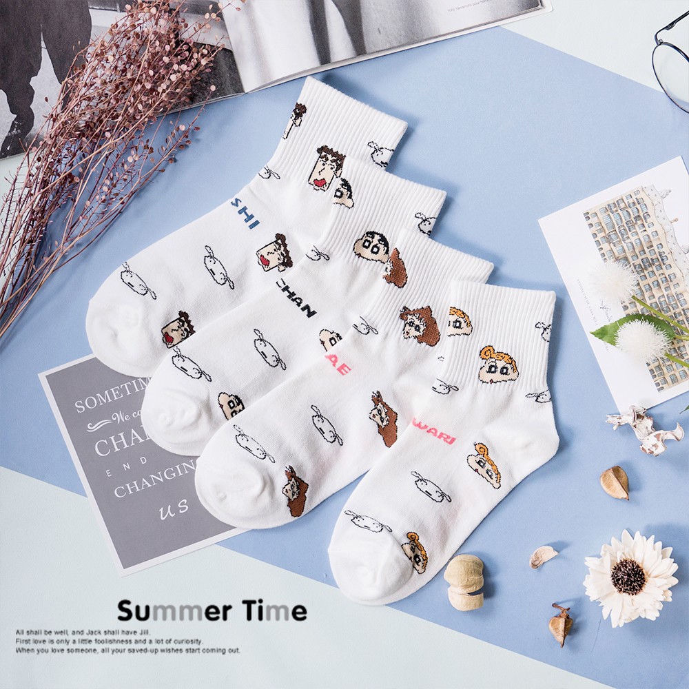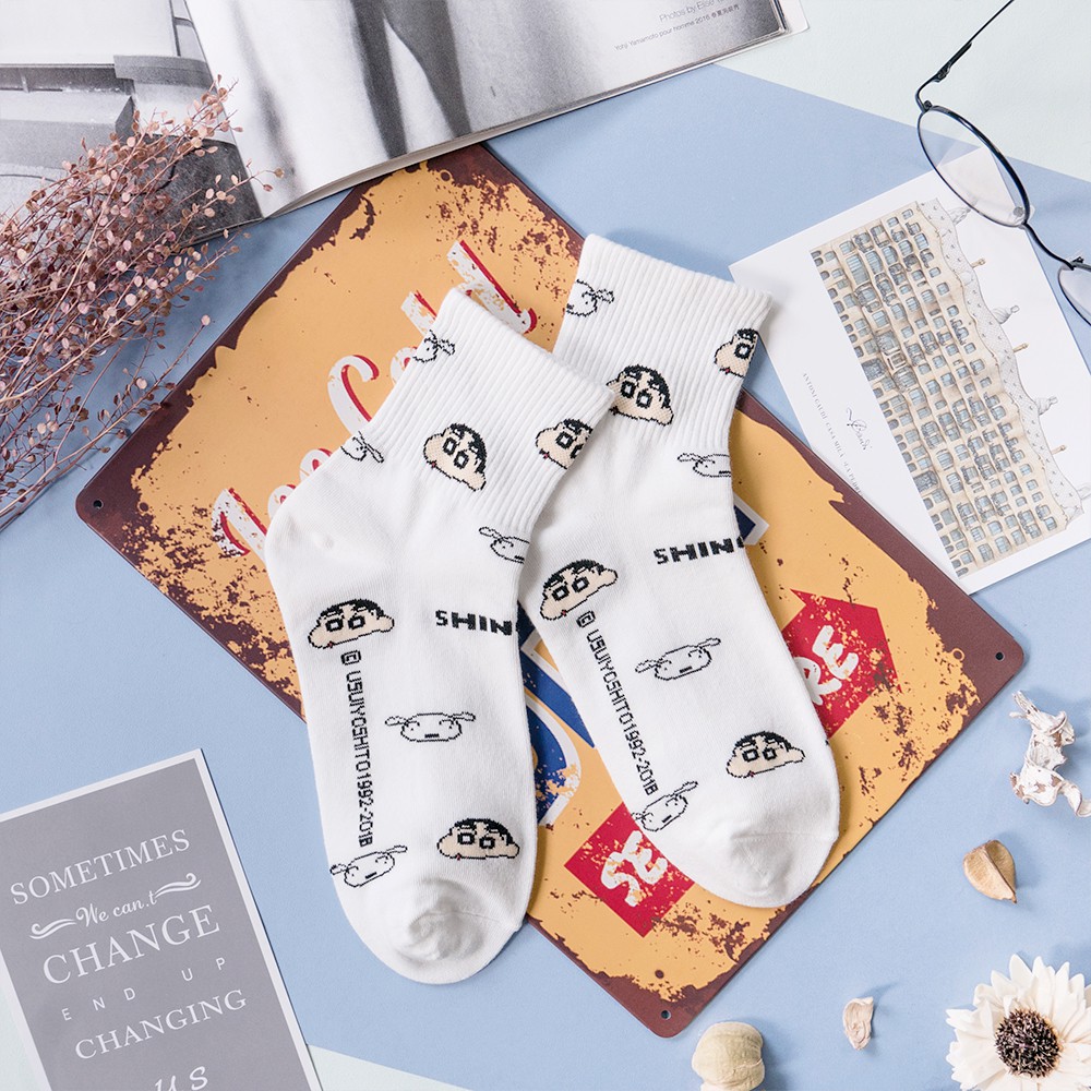 AHUA阿華有事嗎 韓國襪子 蠟筆小新一家人中筒襪 K0355 正韓熱賣款 韓妞必備長襪 百搭純棉襪 素色襪子
