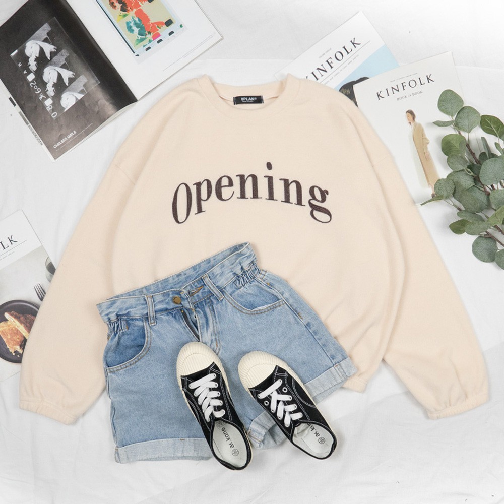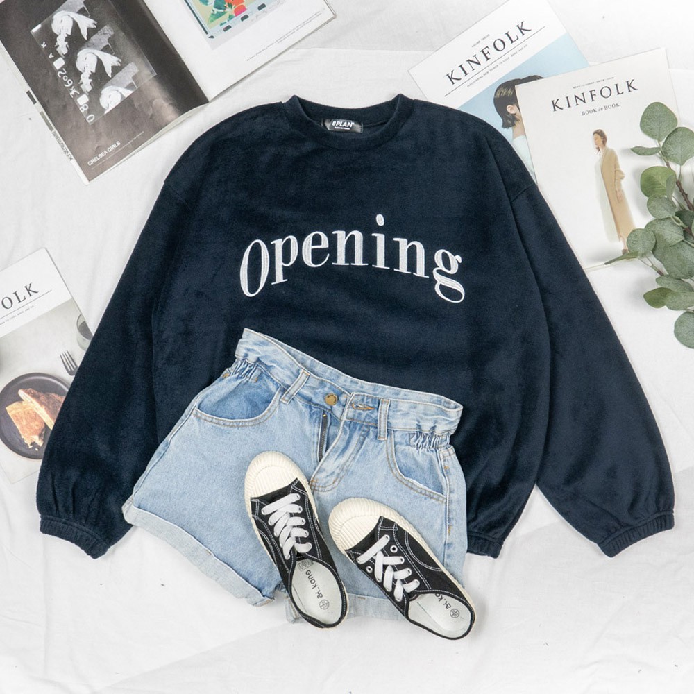 AHUA阿華有事嗎 韓國女裝 Opening下擺縮口加絨長袖大學T【C1537】百搭基本款