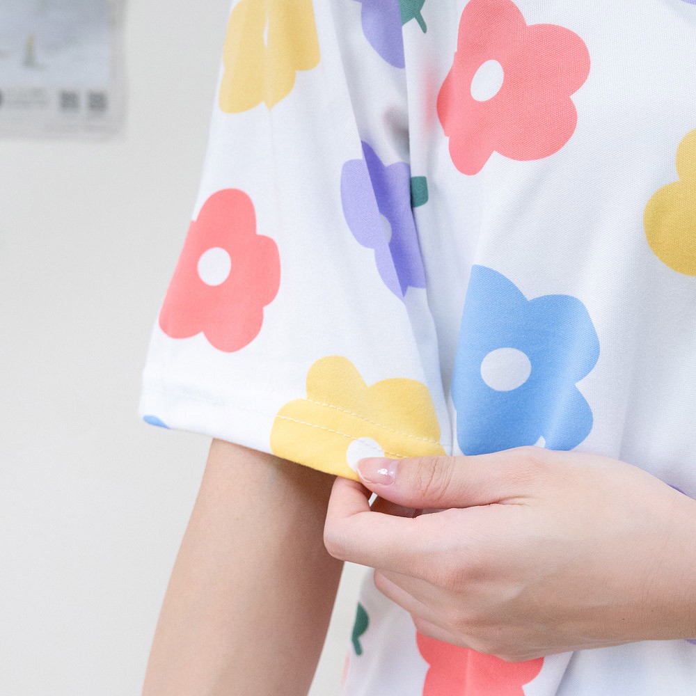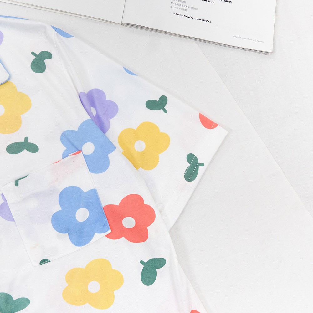 AHUA阿華有事嗎 韓系女裝 彩色花朵翻領短袖套裝居家服 睡衣【 C2059】家居服 韓妞必備 百搭基本款