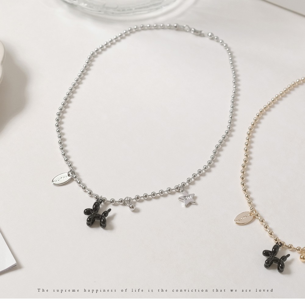 AHUA阿華有事嗎 韓國飾品 金屬珠珠氣球狗項鍊【A0787】正韓 時尚 簡約 幾何 短鍊 頸鍊 百搭 基本款 項鍊