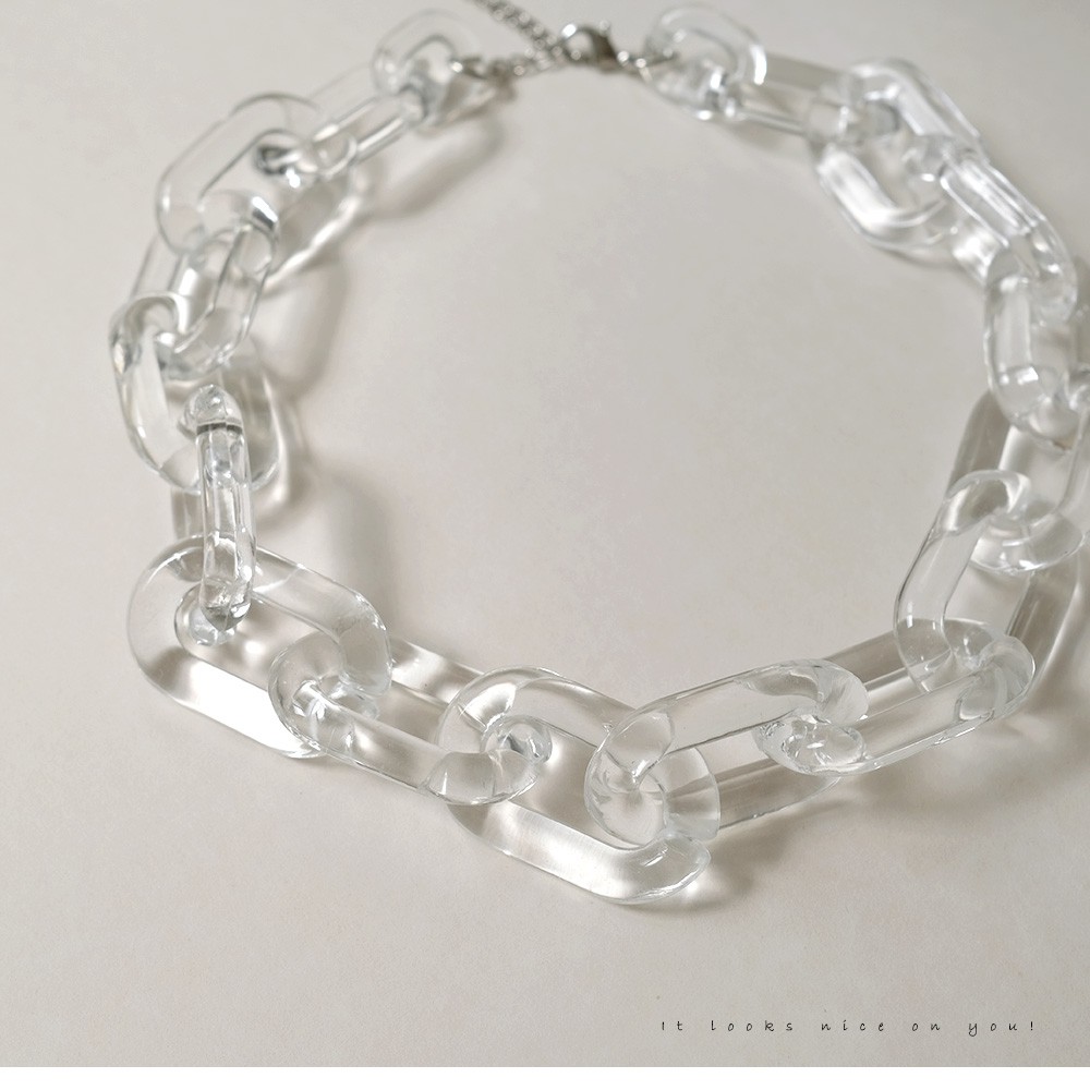 AHUA阿華有事嗎 韓國飾品 透明鎖鏈短項鍊【A0786】正韓 壓克力 時尚 簡約 短鍊 頸鍊 百搭 基本款 項鍊