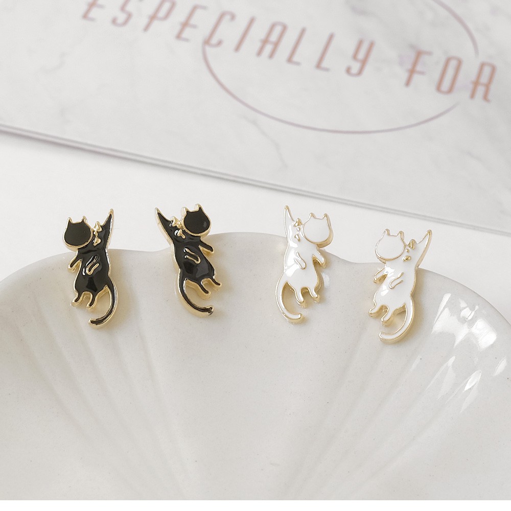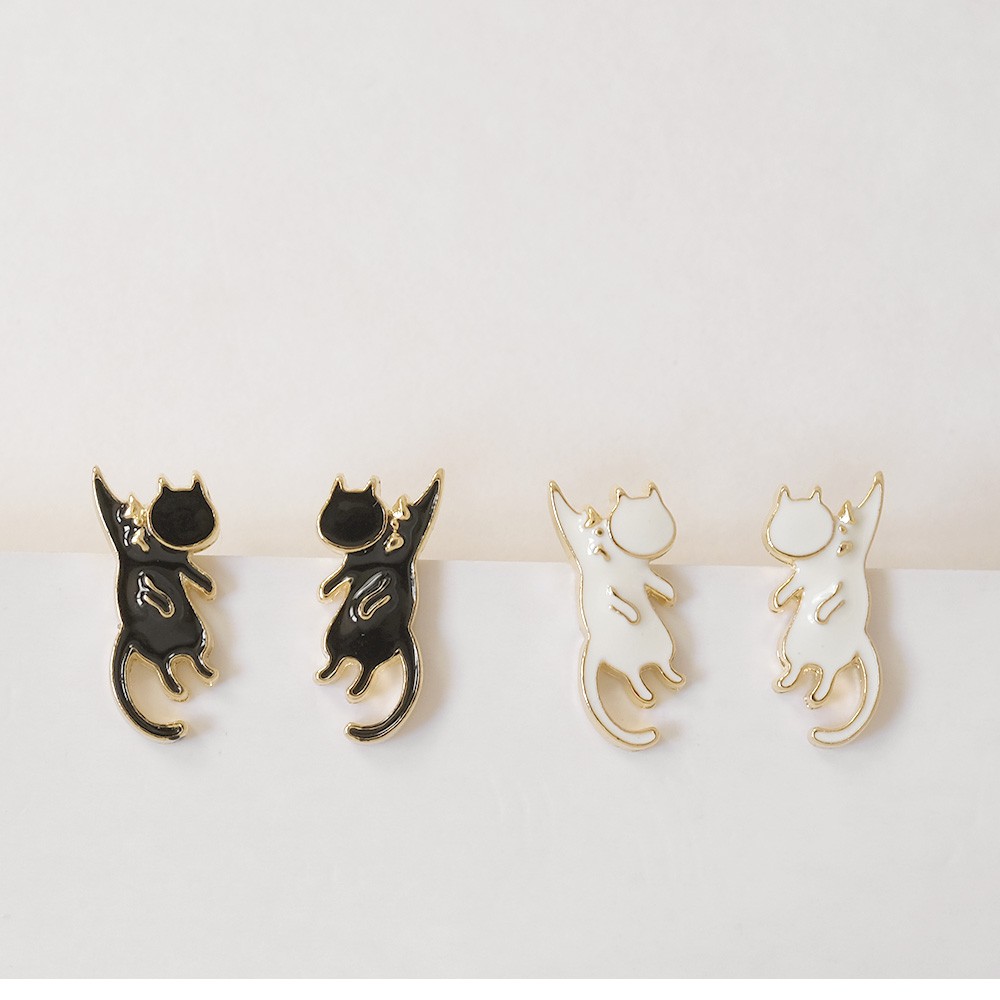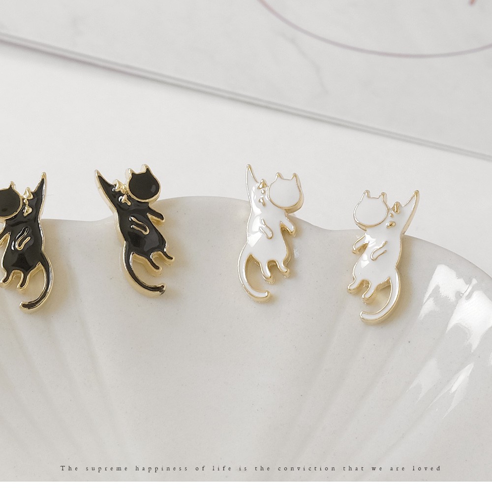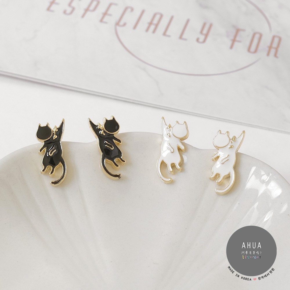 AHUA阿華有事嗎 韓國飾品 可愛吊掛貓咪貼耳耳環【 A0753】簡約 Ins風 氣質 百搭 動物 韓風 耳針 耳環