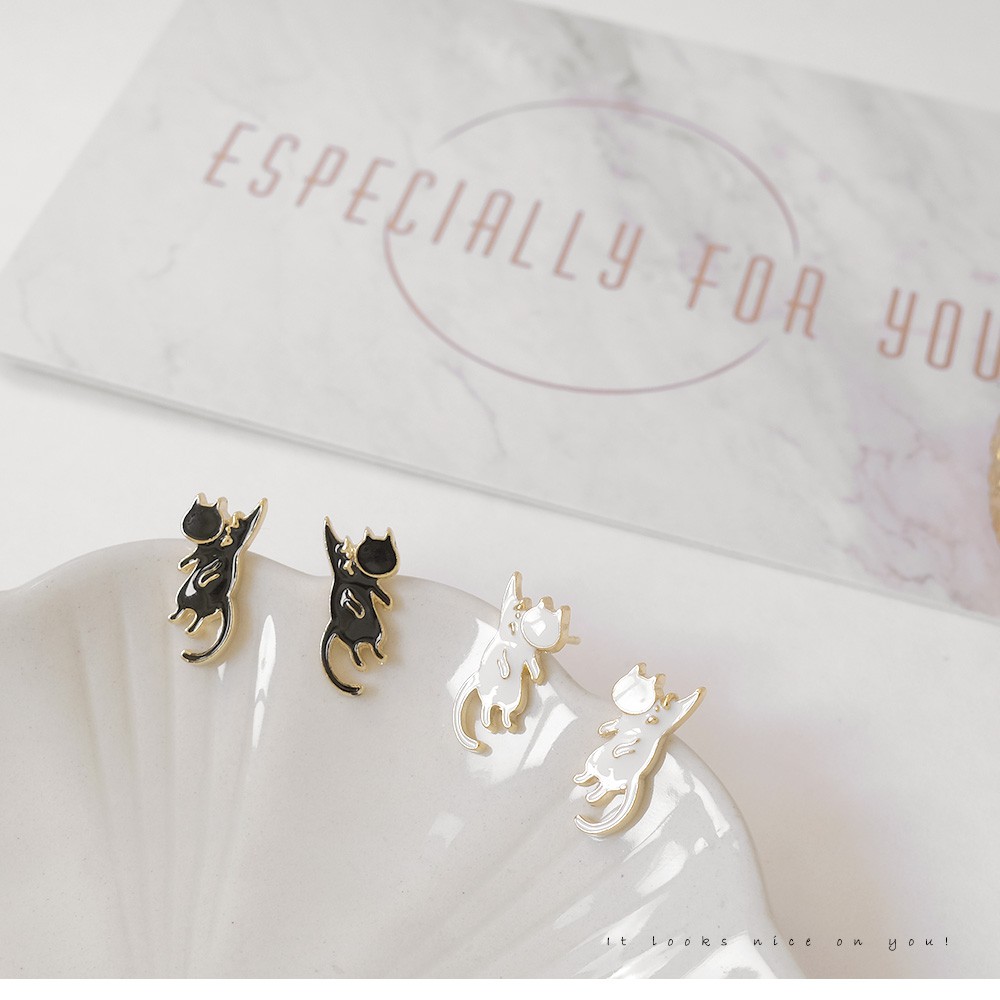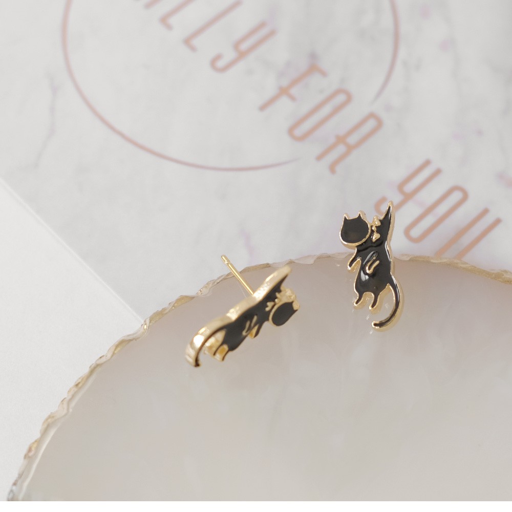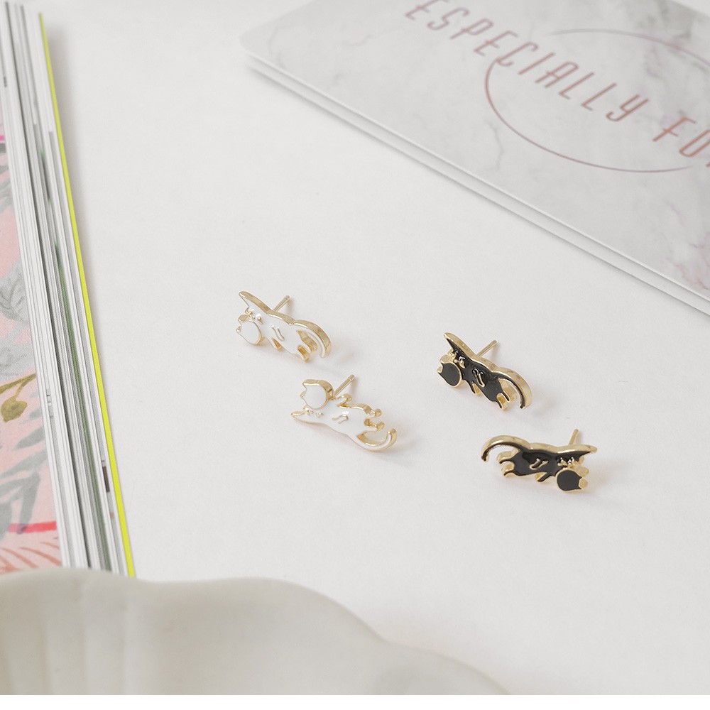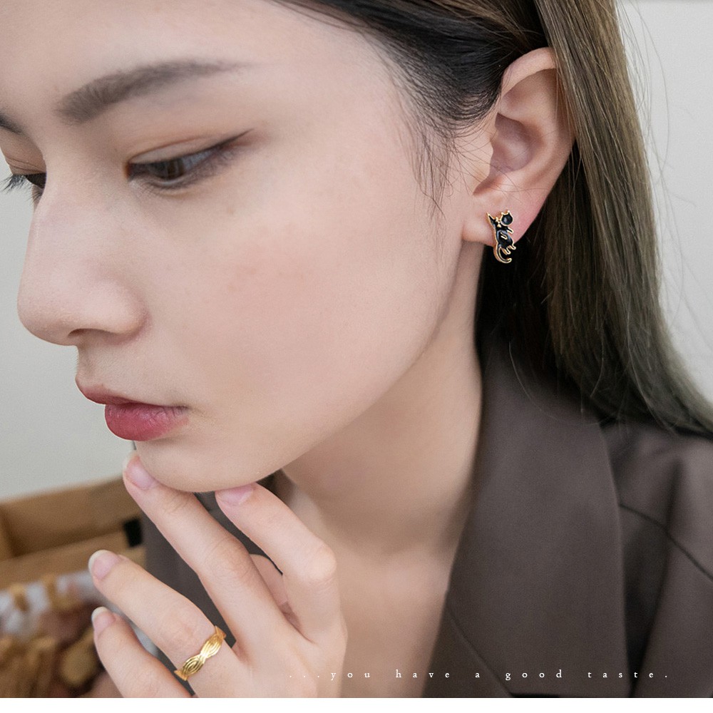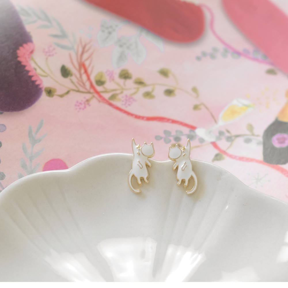 AHUA阿華有事嗎 韓國飾品 可愛吊掛貓咪貼耳耳環【 A0753】簡約 Ins風 氣質 百搭 動物 韓風 耳針 耳環