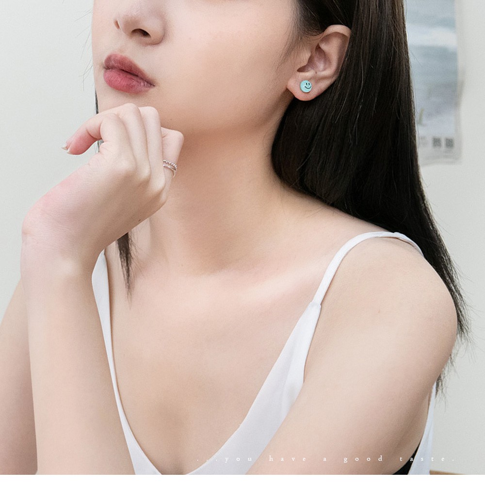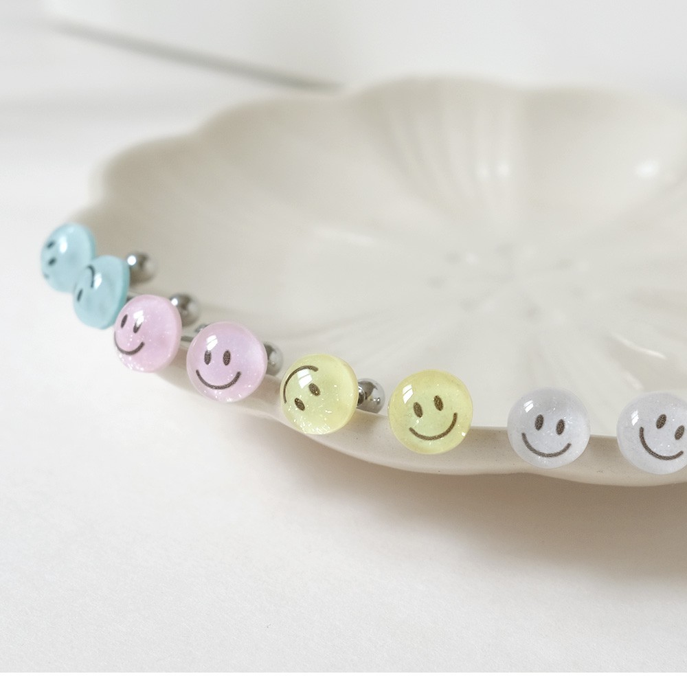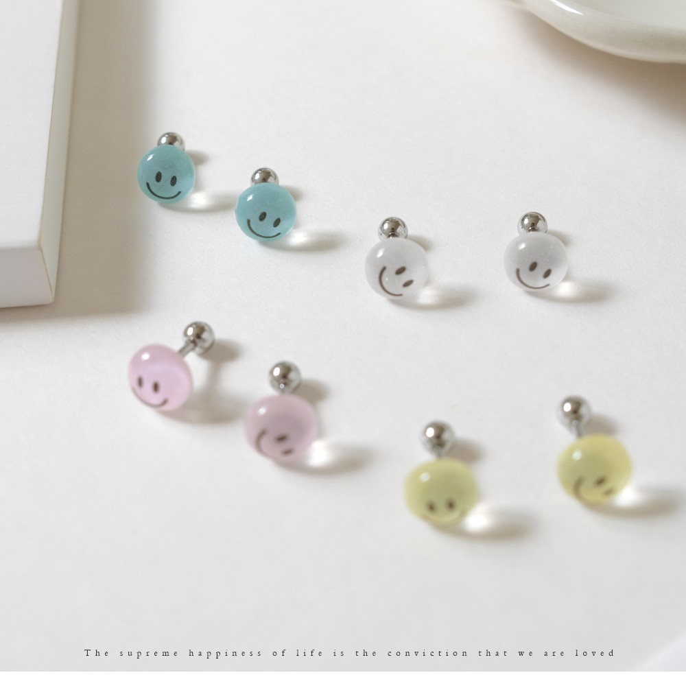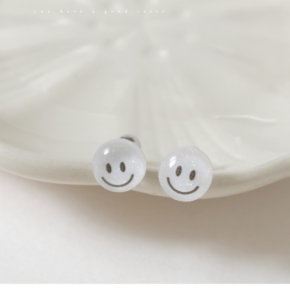 AHUA阿華有事嗎 韓國飾品 金蔥果凍感笑臉醫療鋼耳環(單個售)【A0783】正韓 Ins風 氣質 百搭 耳針 耳環
