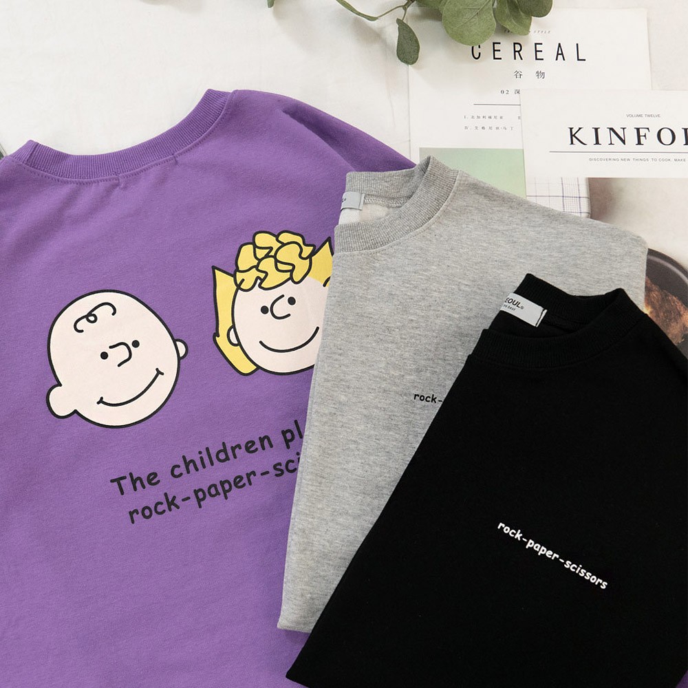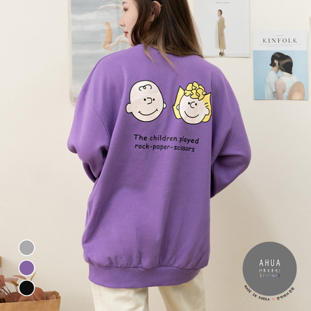 AHUA阿華有事嗎 韓國女裝 查理與露西長袖T恤【C2182】簡約 可愛 卡通 印花 顯瘦 韓妞必備 百搭 基本款 上衣