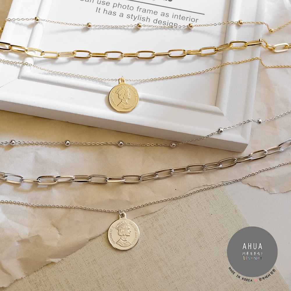AHUA阿華有事嗎 韓國飾品 復古錢幣多層次長項鍊【A0244】正韓 時尚 簡約 金幣 長鍊 頸鍊 百搭 基本款