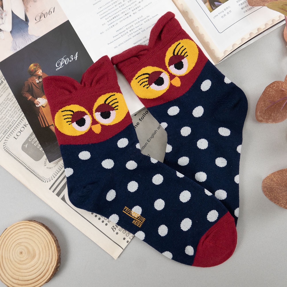 AUHA阿華有事嗎 韓國襪子 立體耳朵全身貓頭鷹中筒襪【K1257】可愛 少女襪 百搭純棉襪