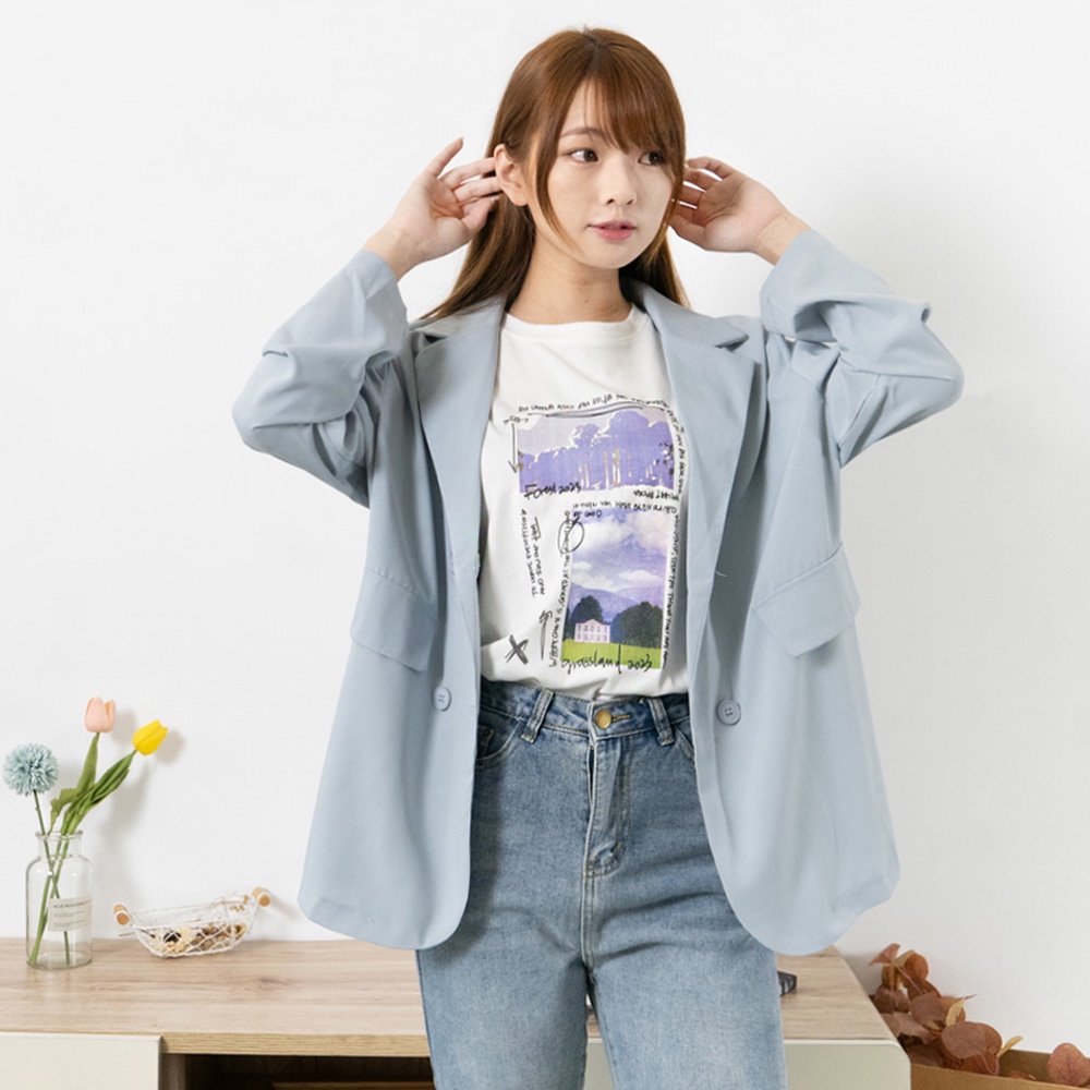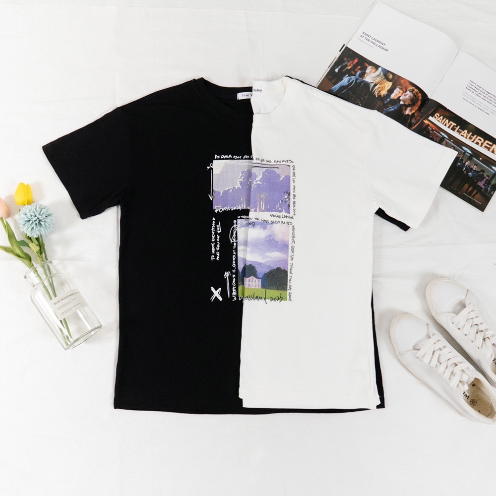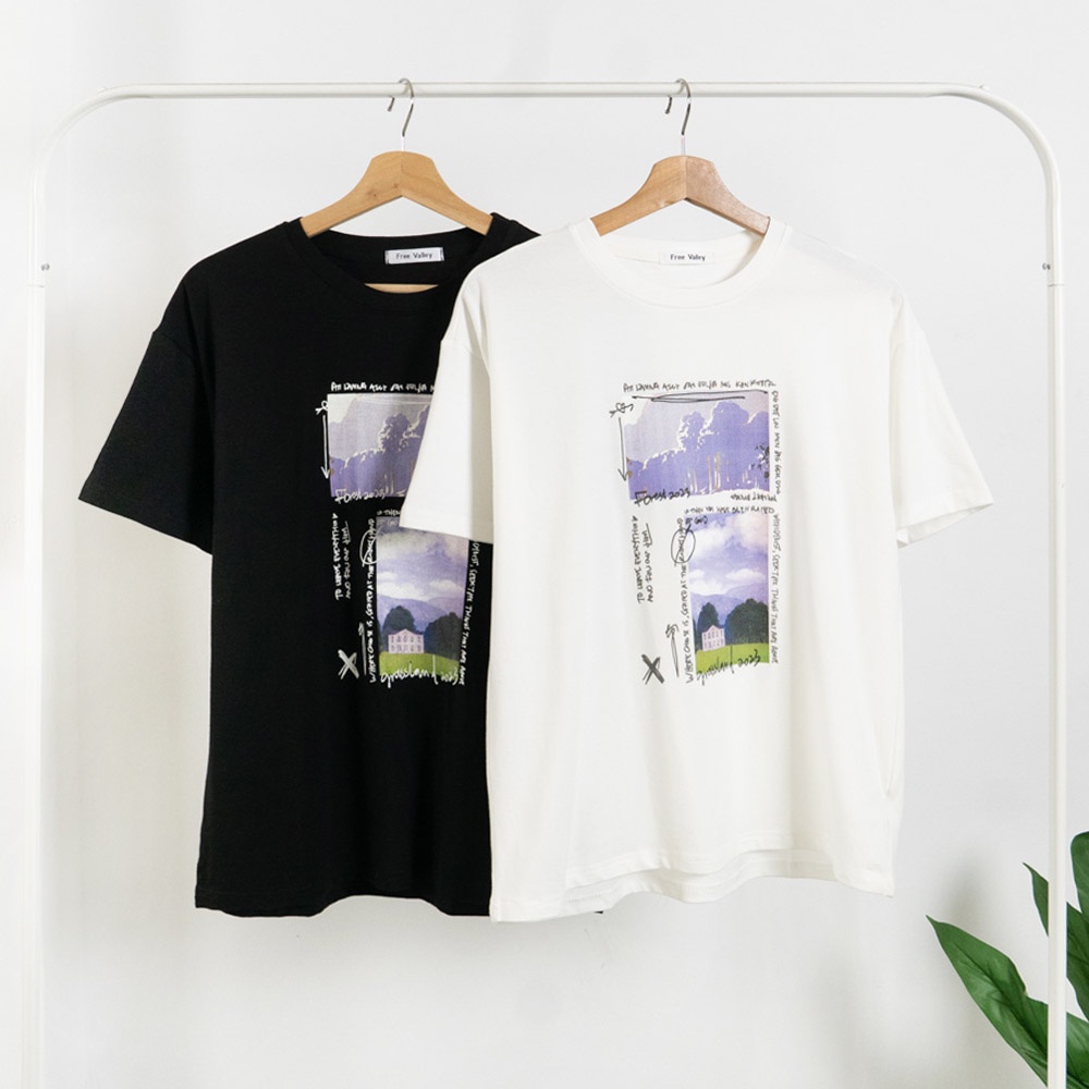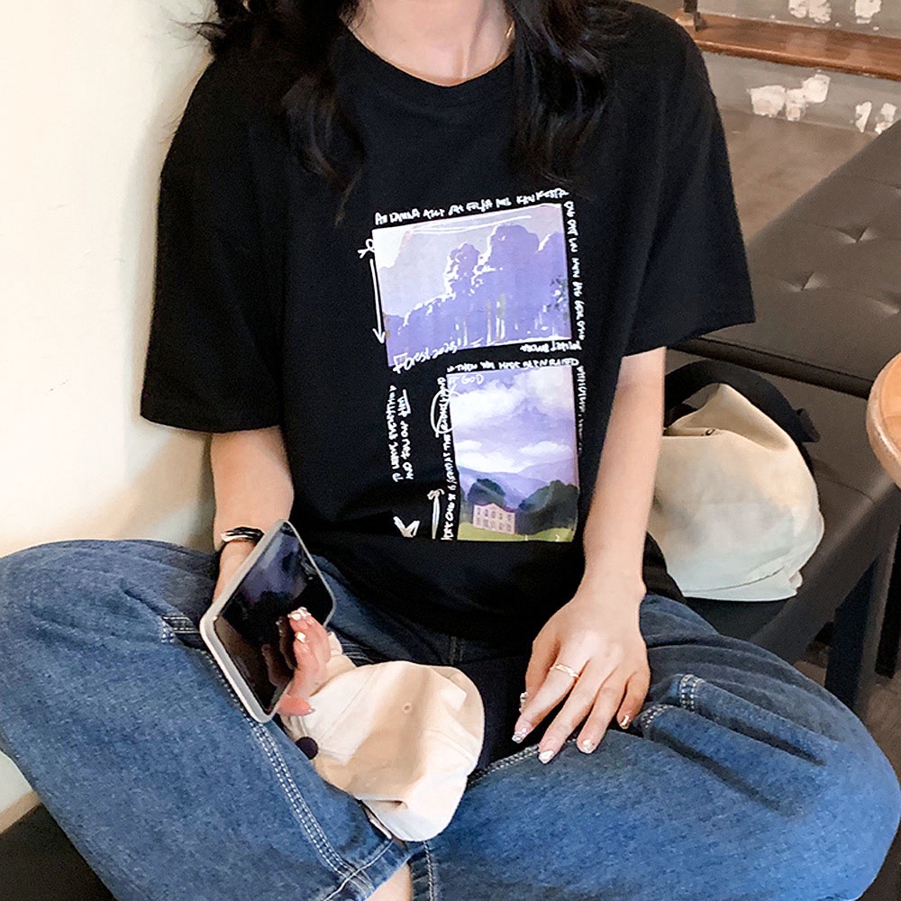 AHUA阿華有事嗎 韓系女裝 字母風景圖案短袖T恤【C2362】休閒 寬鬆 印花 短袖上衣 T恤 顯瘦 百搭 基本款