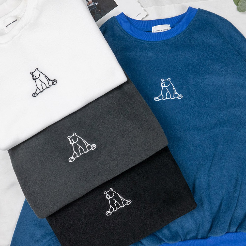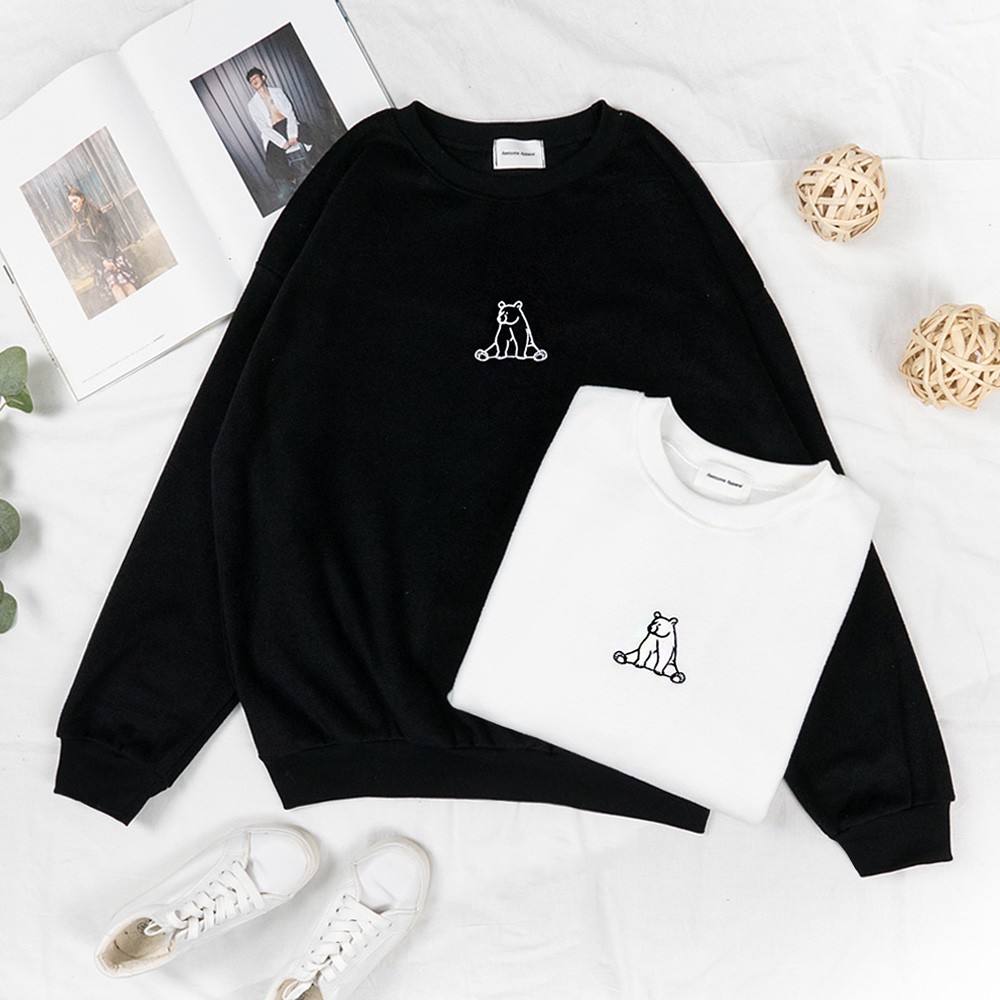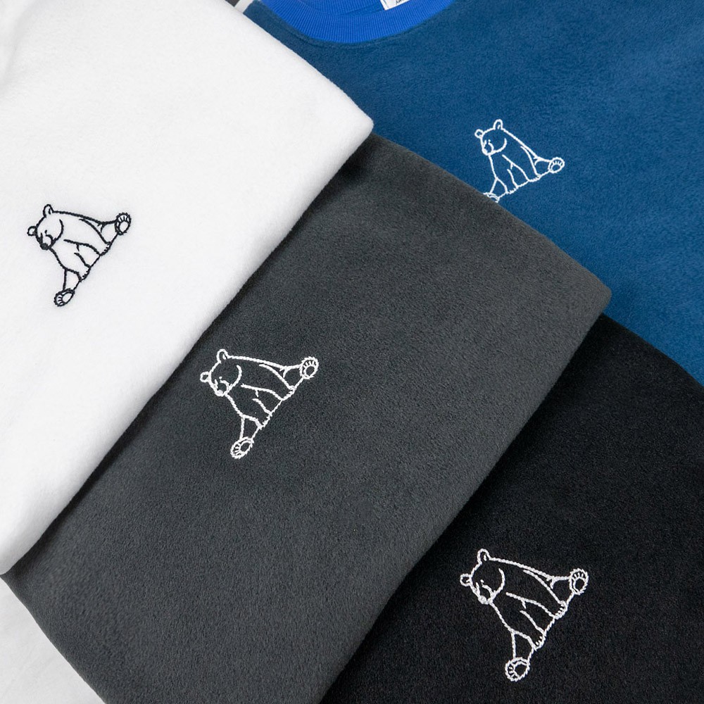 AHUA阿華有事嗎 韓國女裝 簡約刺繡熊熊絨面長袖上衣【C1630】百搭基本款
