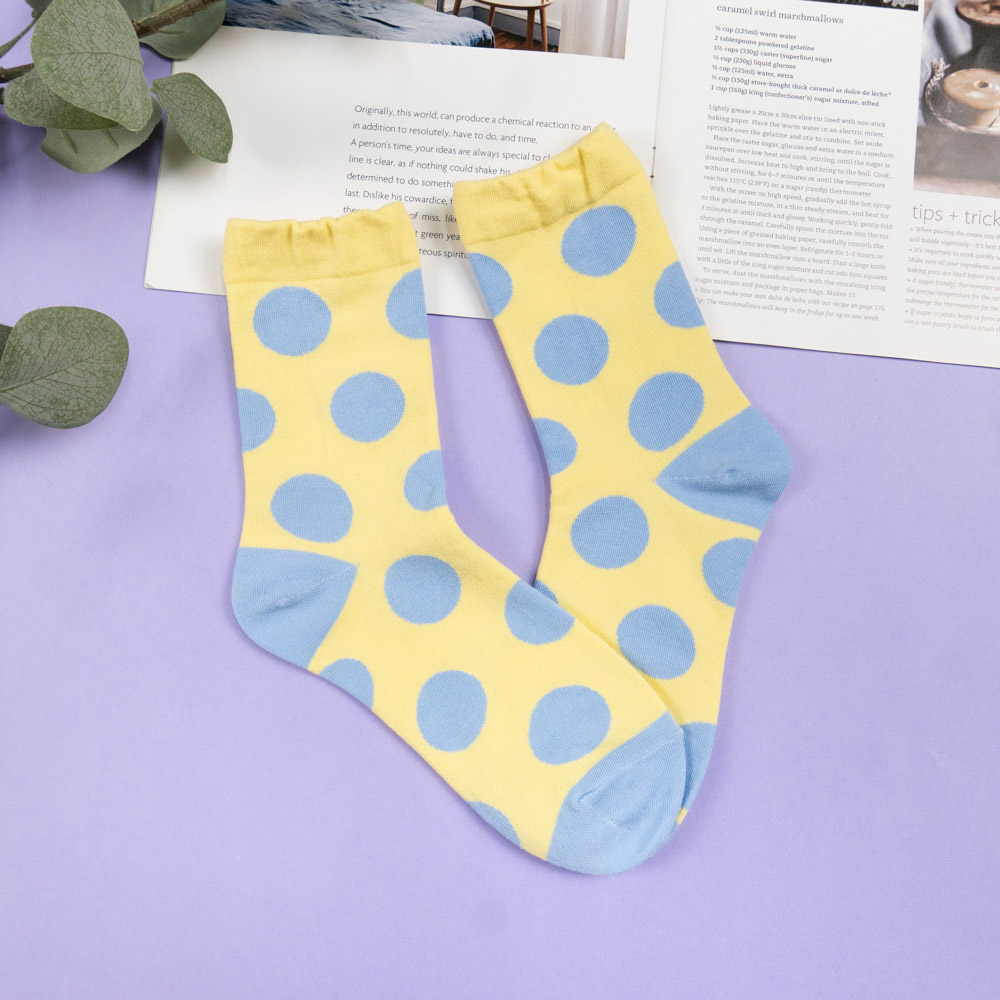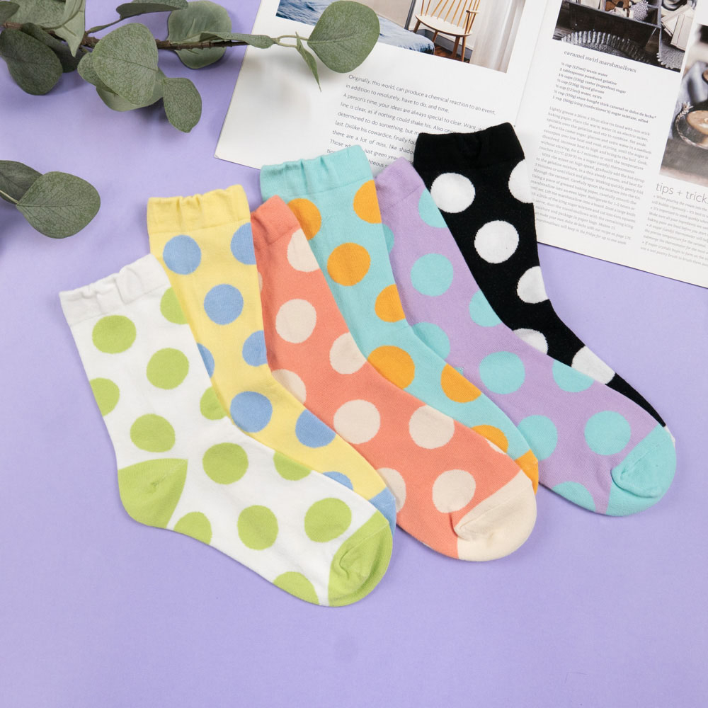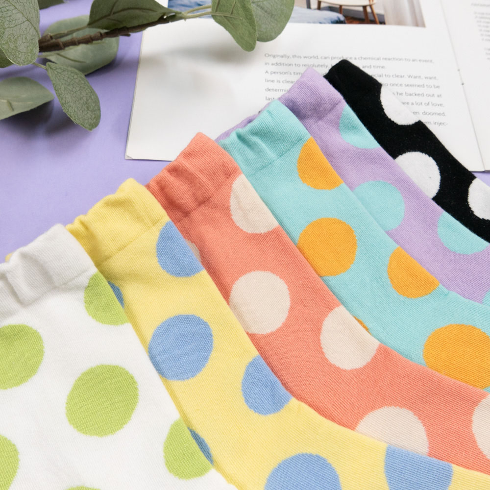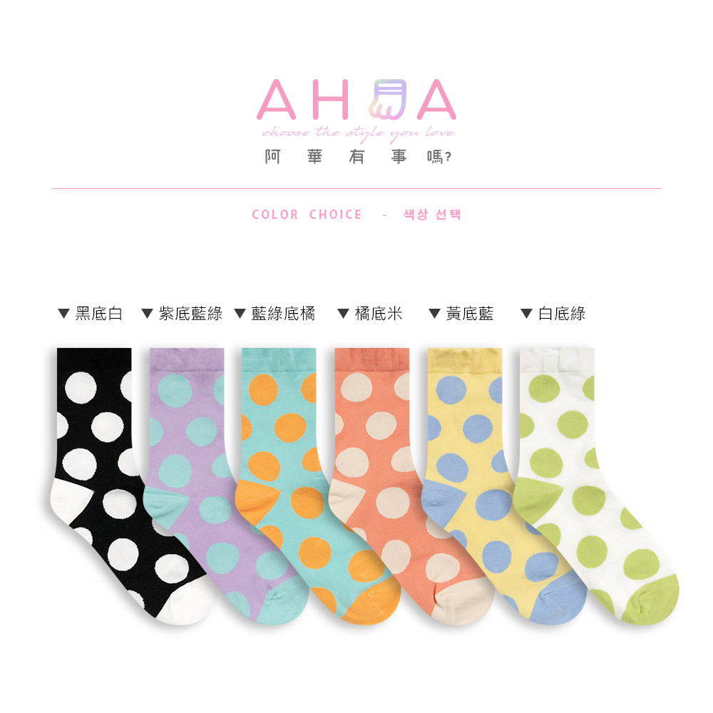 AHUA阿華有事嗎 韓國襪子 跳色圓點中筒襪 女襪 K1655 襪子推薦 流行襪首選 可愛 長襪 拼接襪子