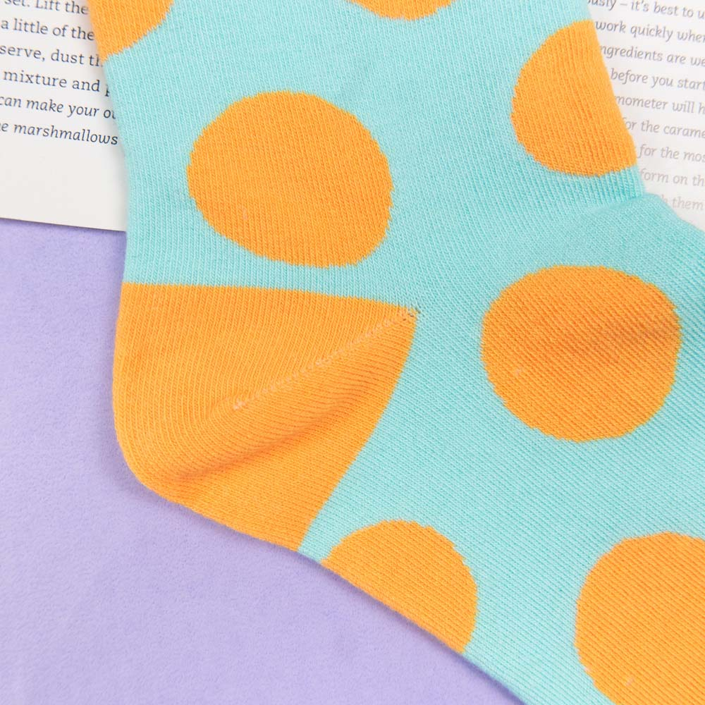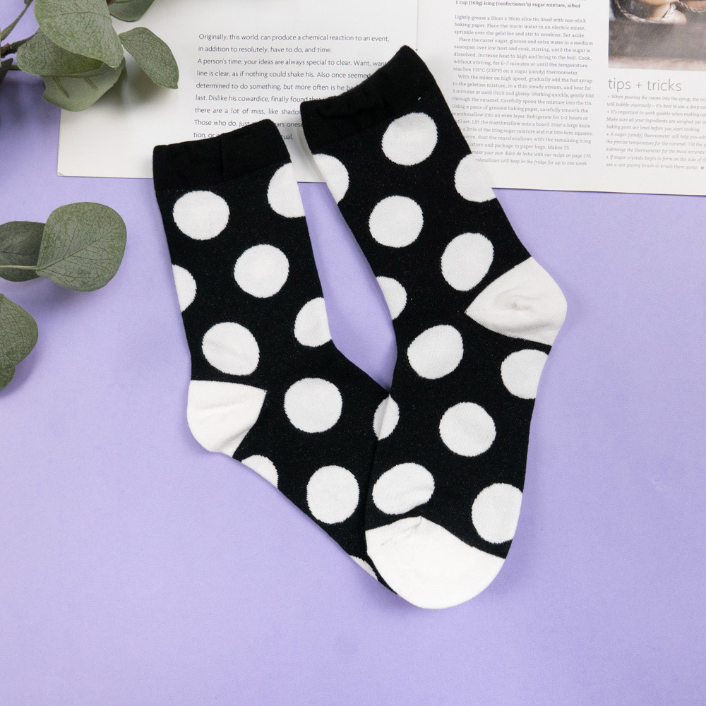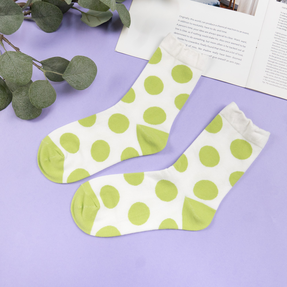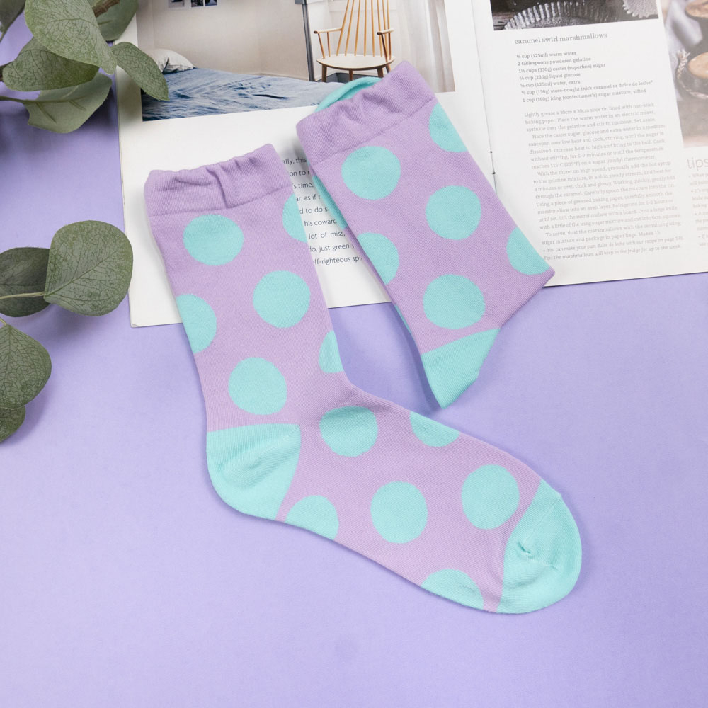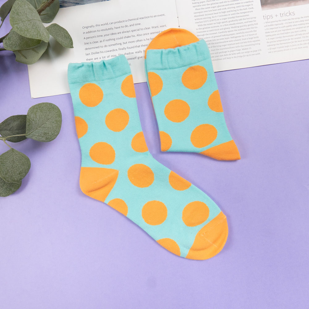 AHUA阿華有事嗎 韓國襪子 跳色圓點中筒襪 女襪 K1655 襪子推薦 流行襪首選 可愛 長襪 拼接襪子