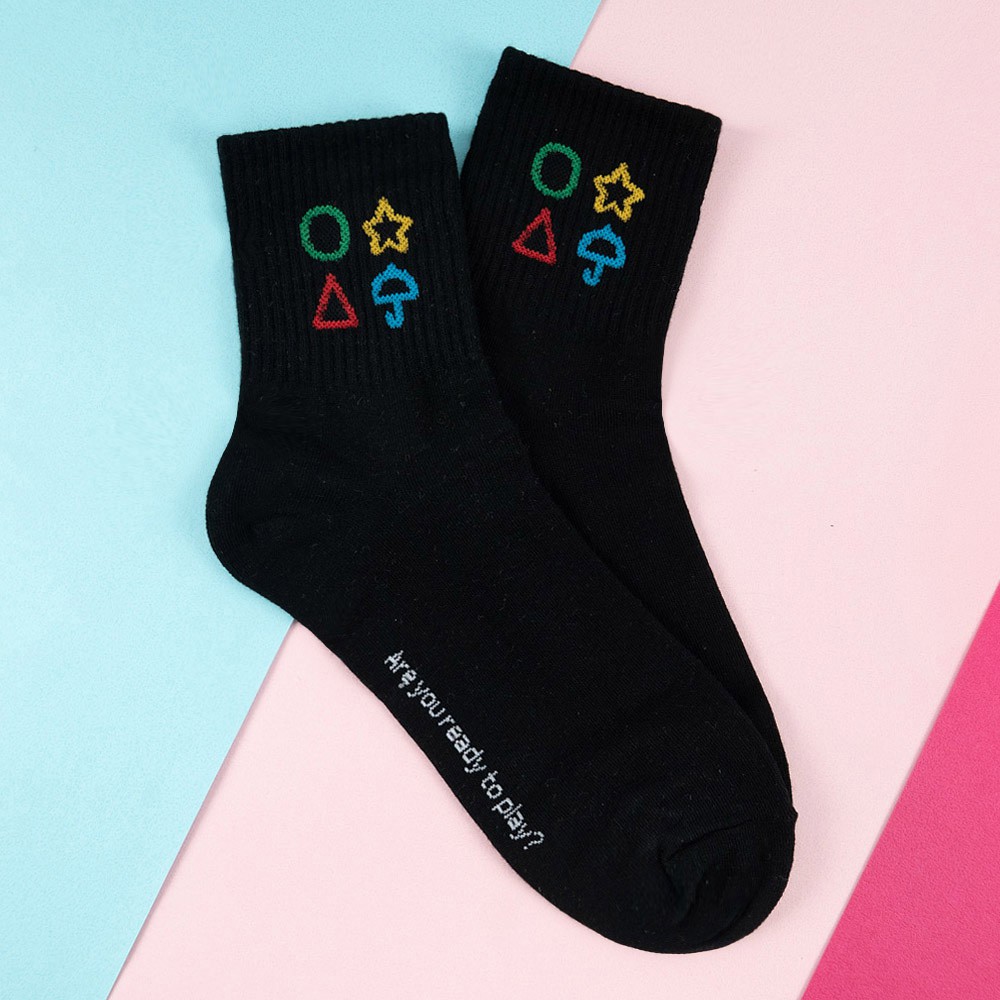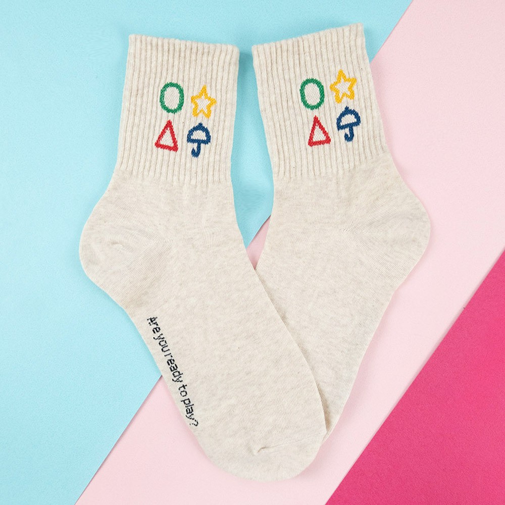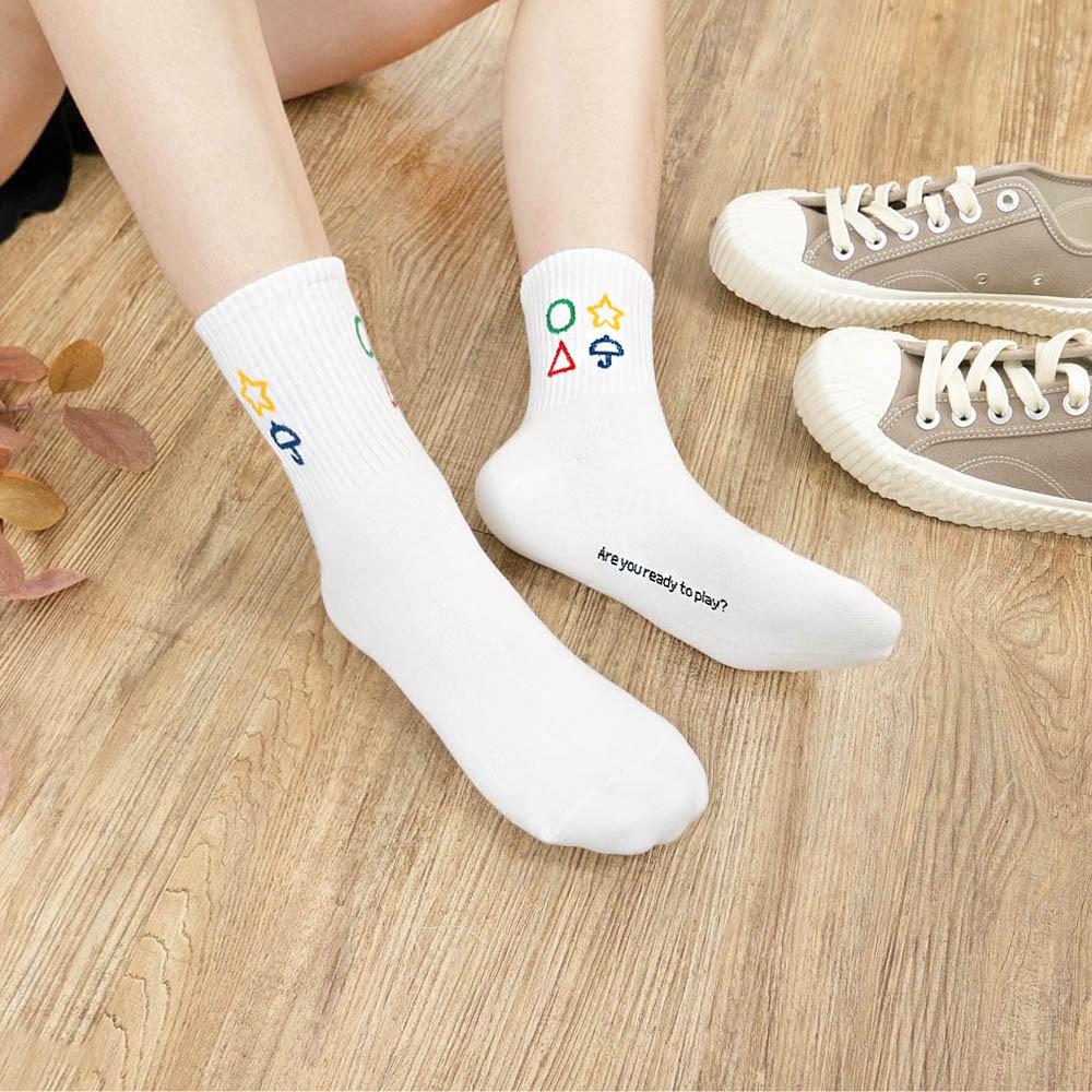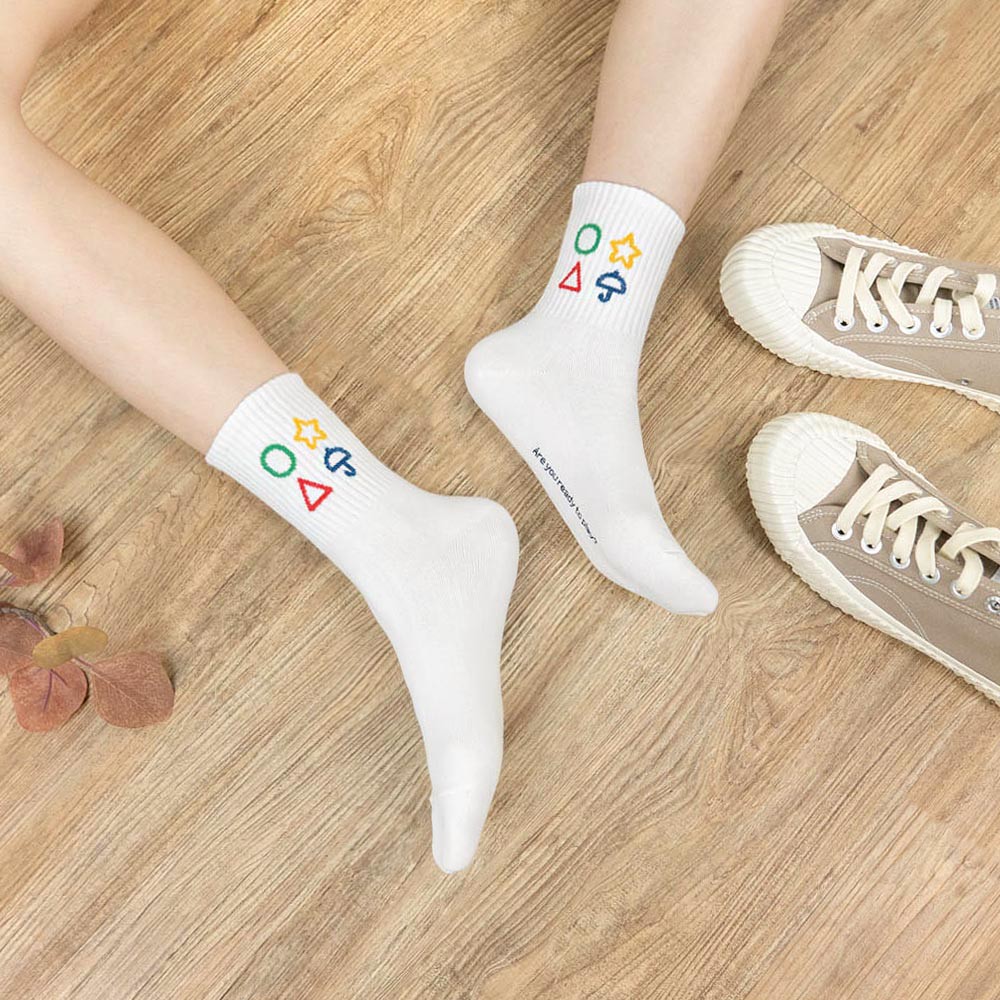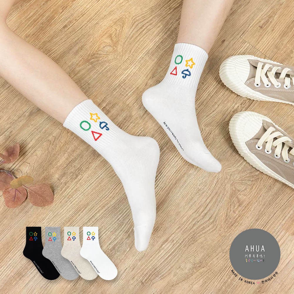 AHUA阿華有事嗎 韓國襪子 襪口幾何圖案中筒襪【K1347】少女襪 百搭純棉襪
