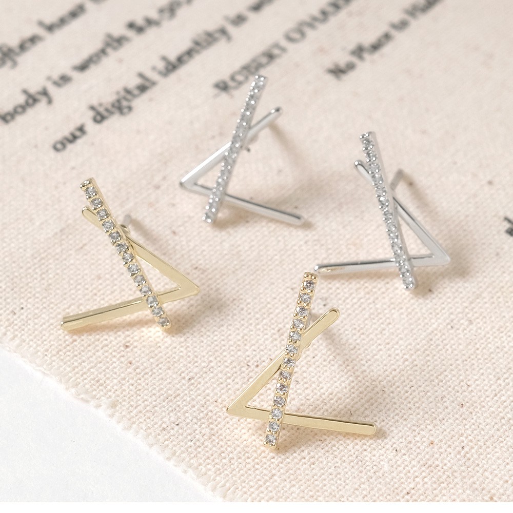AHUA阿華有事嗎 韓國飾品 氣質幾何線鑽貼耳耳環【A0767】正韓 簡約 鑲鑽 水鑽 Ins風 氣質 百搭 線條 耳針