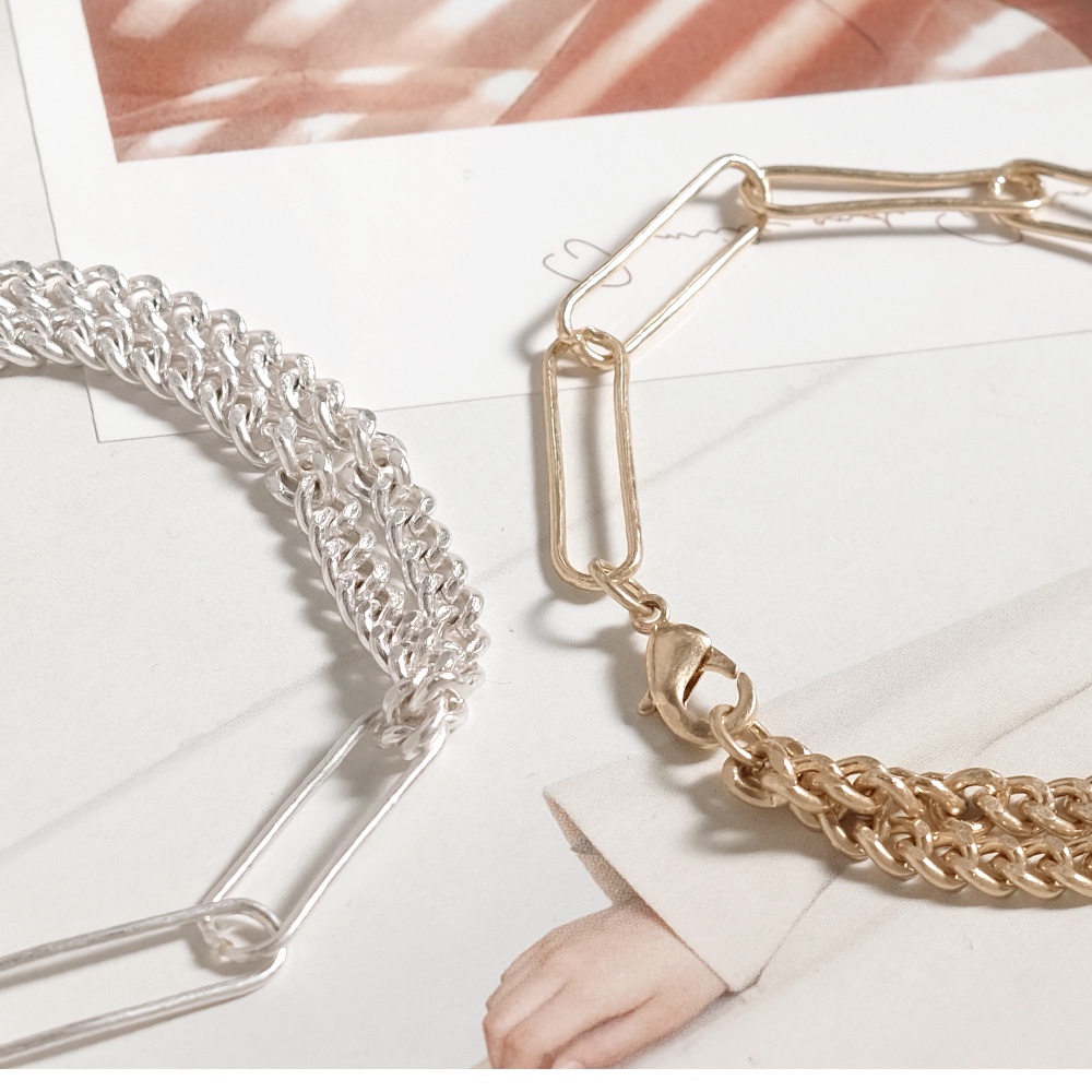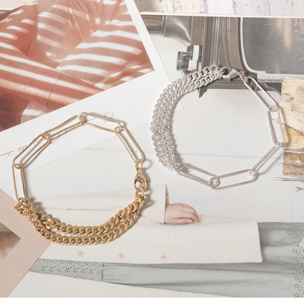 AHUA阿華有事嗎 韓國飾品 不對稱霧感鎖鏈雙層手鏈【A0824】正韓 時尚 簡約 韓妞必備 百搭 基本款 手環