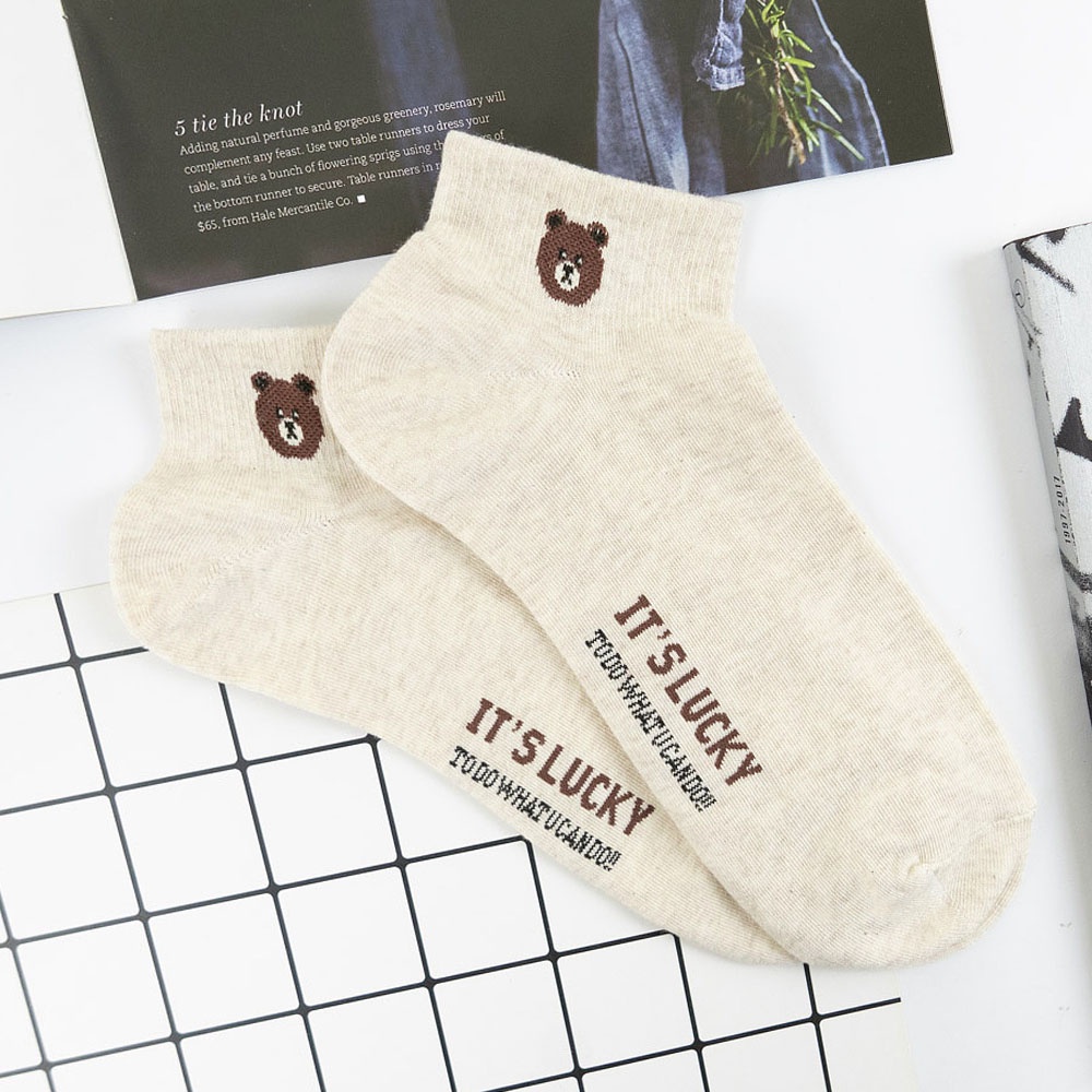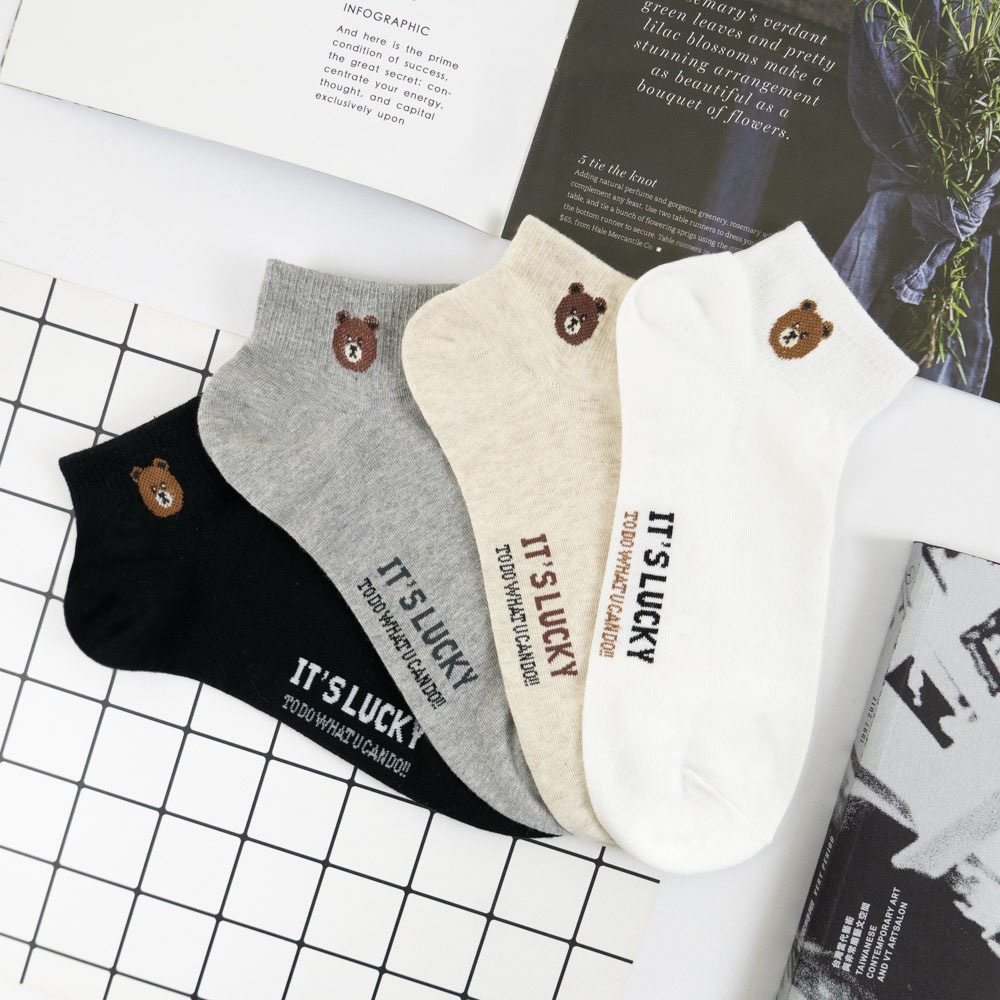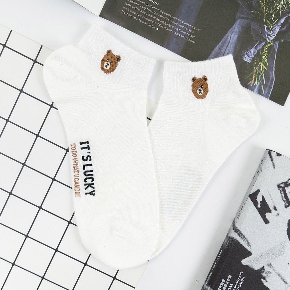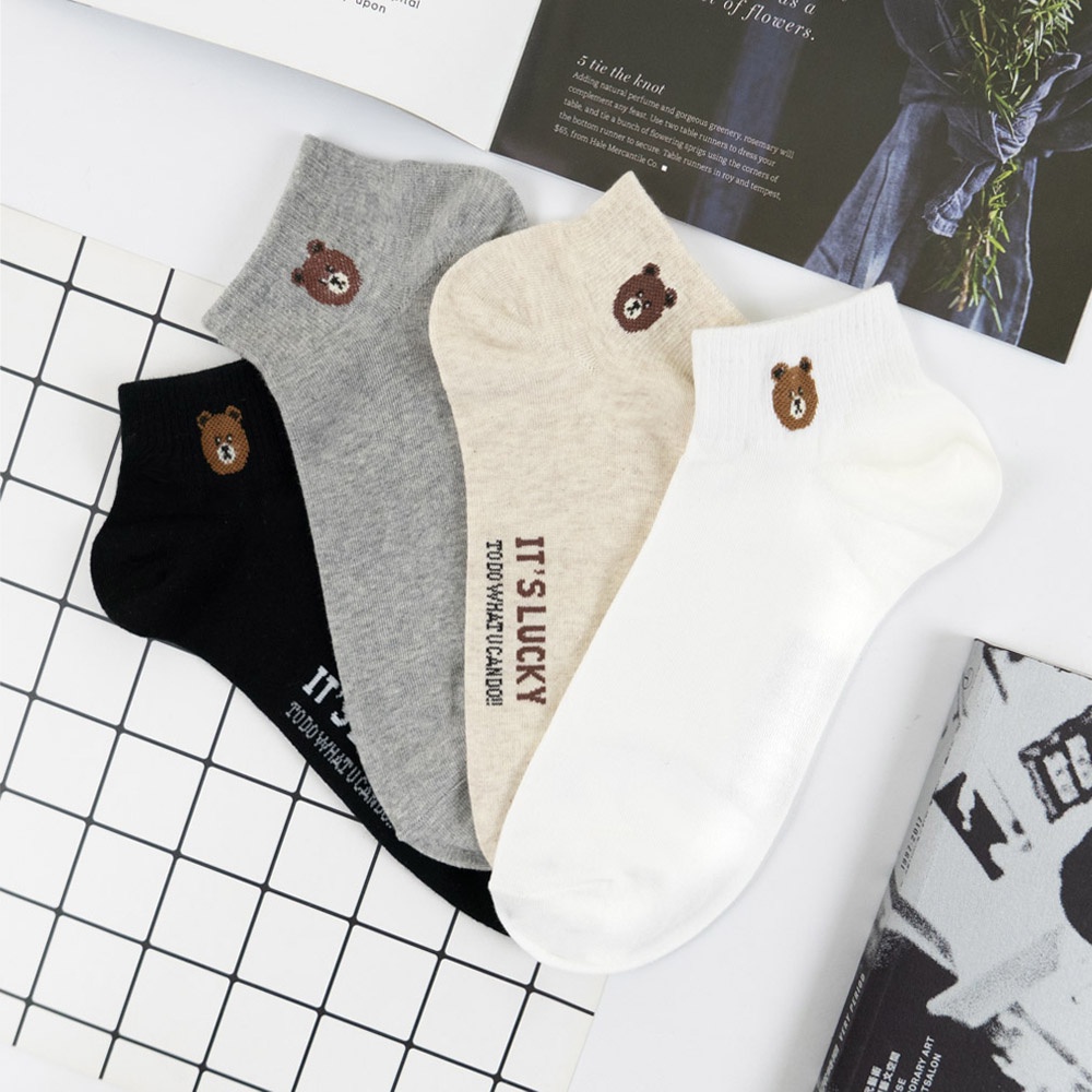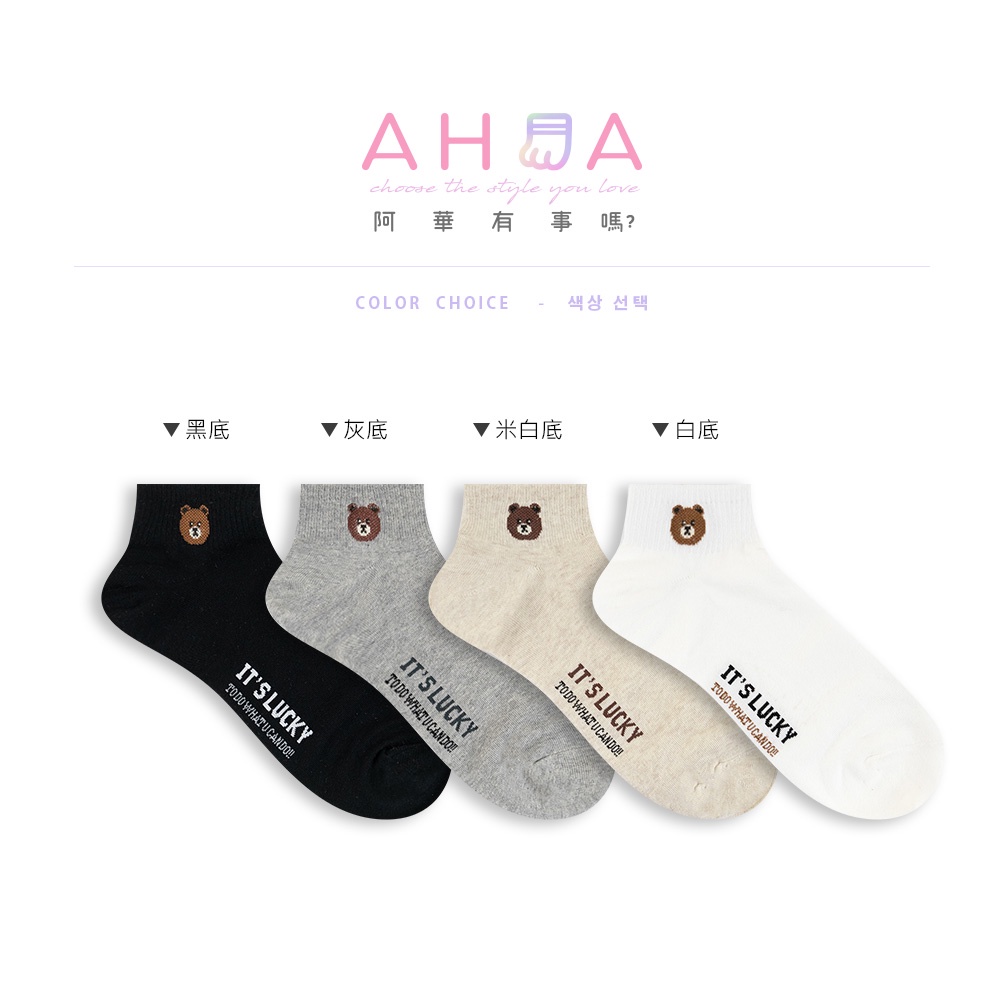 AUHA阿華有事嗎 韓國襪子 襪口小熊純色男生短襪 男襪【K1374】型男必備 百搭純棉襪