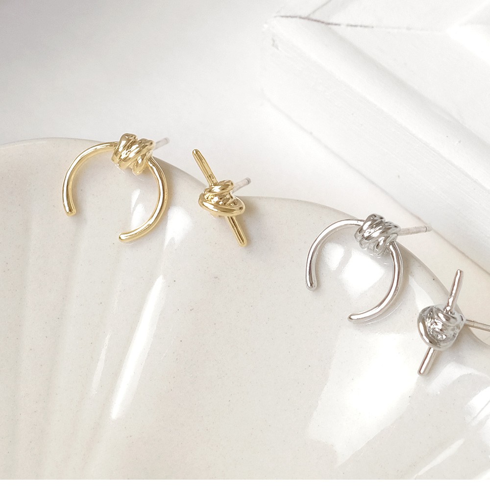 AHUA阿華有事嗎 韓國飾品 簡約結繩不對稱貼耳耳環【A0738】正韓 幾何 Ins風 氣質 百搭 基本款 耳針 耳環