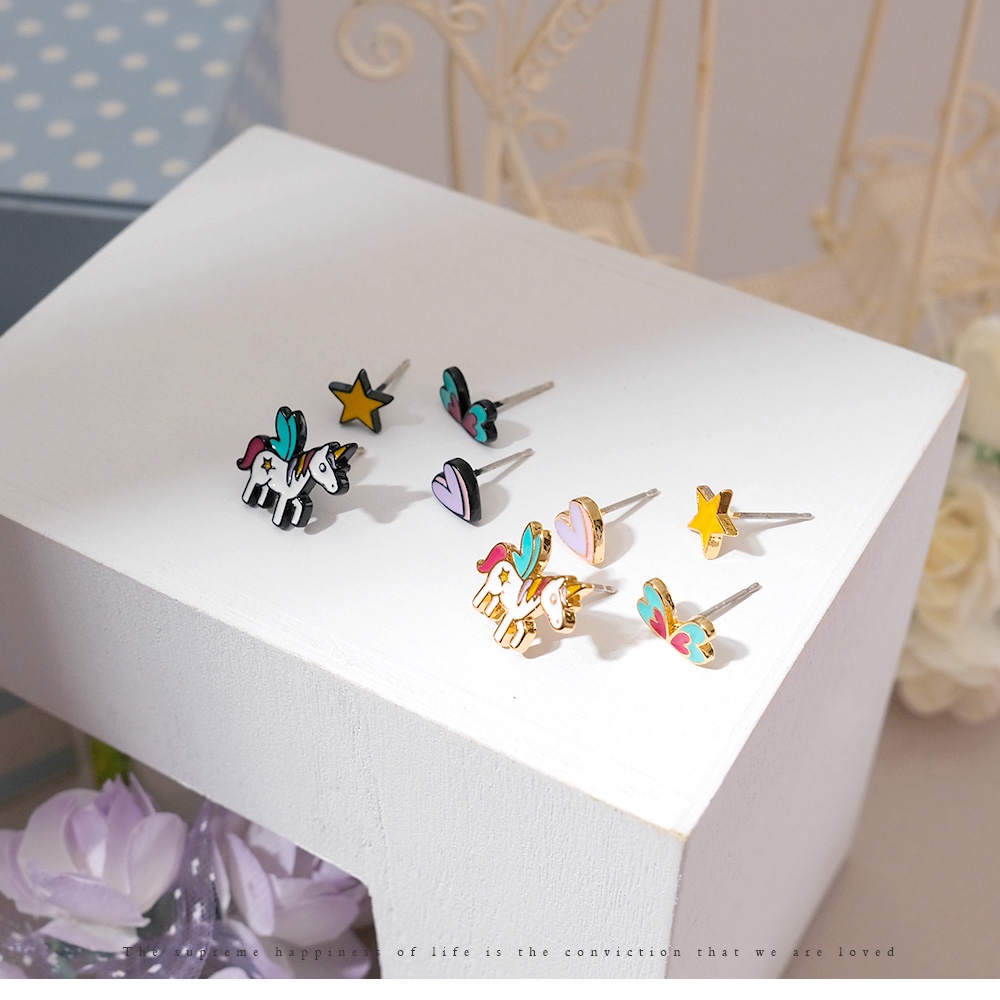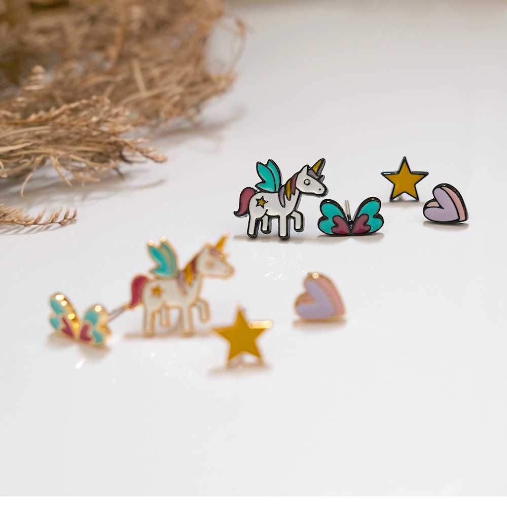 AHUA阿華有事嗎 韓國飾品 可愛獨角獸耳環4入組【A0057】正韓 可愛 時尚 簡約 韓妞必備 百搭 基本款 耳針