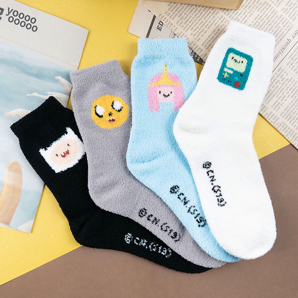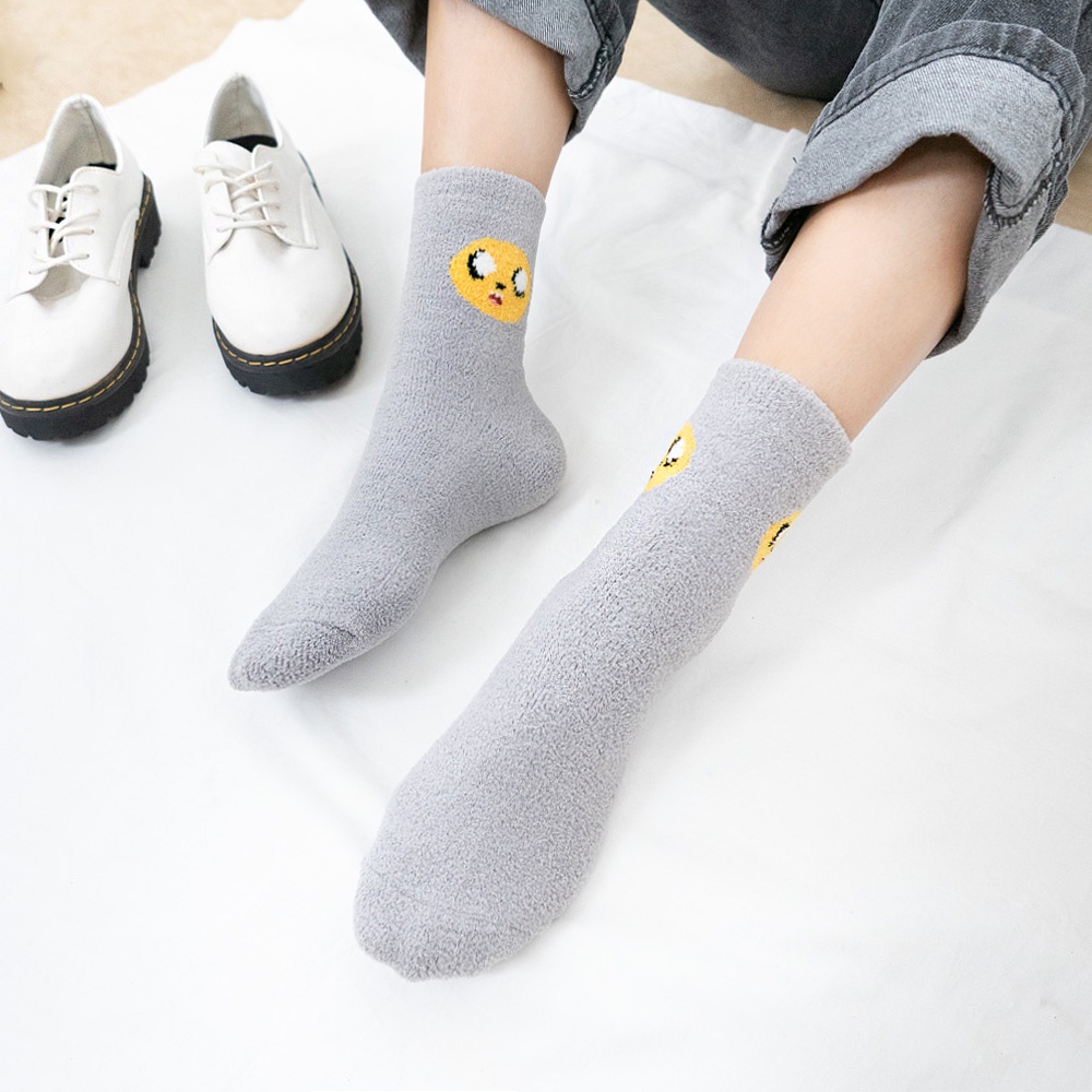 AUHA阿華有事嗎 韓國襪子 絨毛探險活寶純色中筒襪【K1384】卡通襪 中筒襪 保暖襪 百搭純棉襪