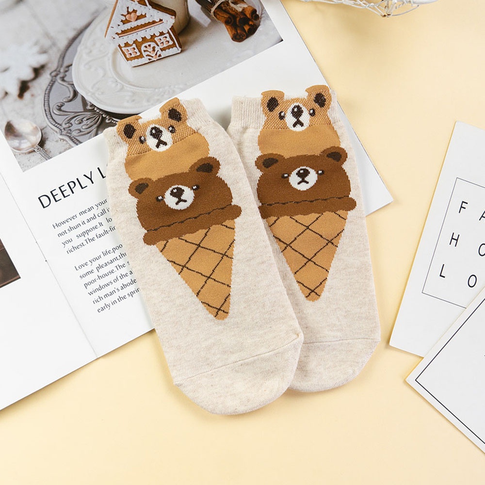 AUHA阿華有事嗎 韓國襪子 立體耳朵熊熊造型甜點短襪【K1445】可愛 短襪 女襪 百搭純棉襪