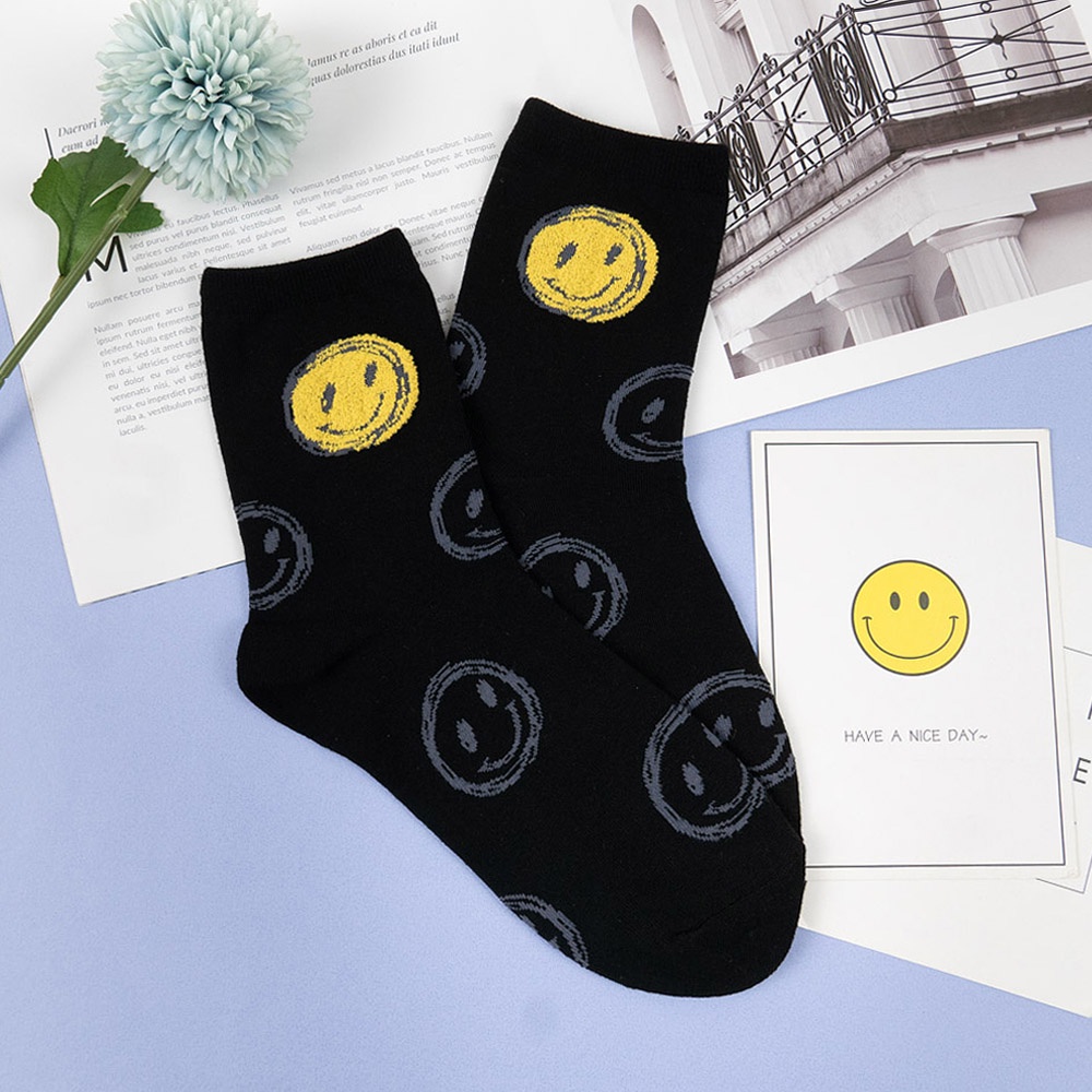 AUHA阿華有事嗎 韓國襪子 毛毛塗鴉表情滿版中筒襪【K1417】百搭 可愛 中筒襪 女襪 百搭純棉襪