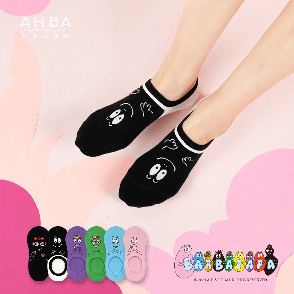 AHUA阿華有事嗎 BARBAPAPA泡泡先生全版大臉人物隱形襪 【R0014】 MIT台灣製造 正版授權