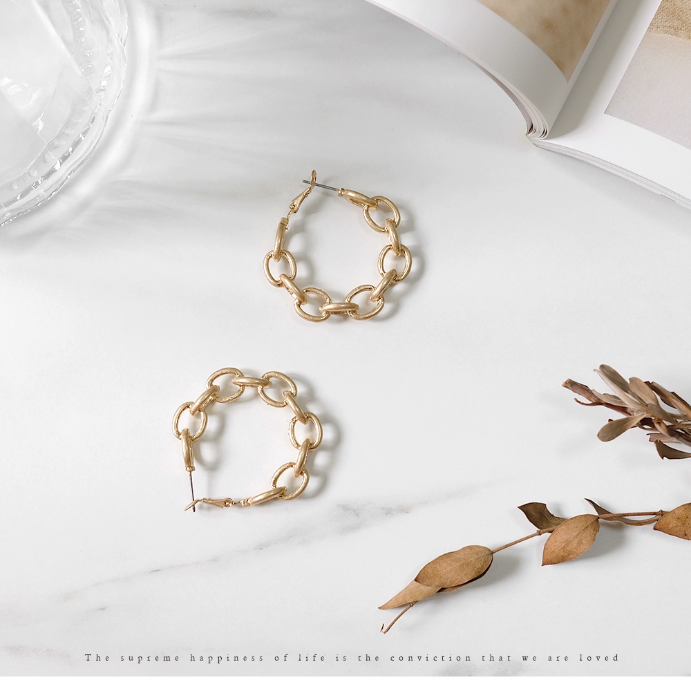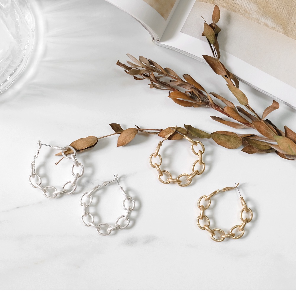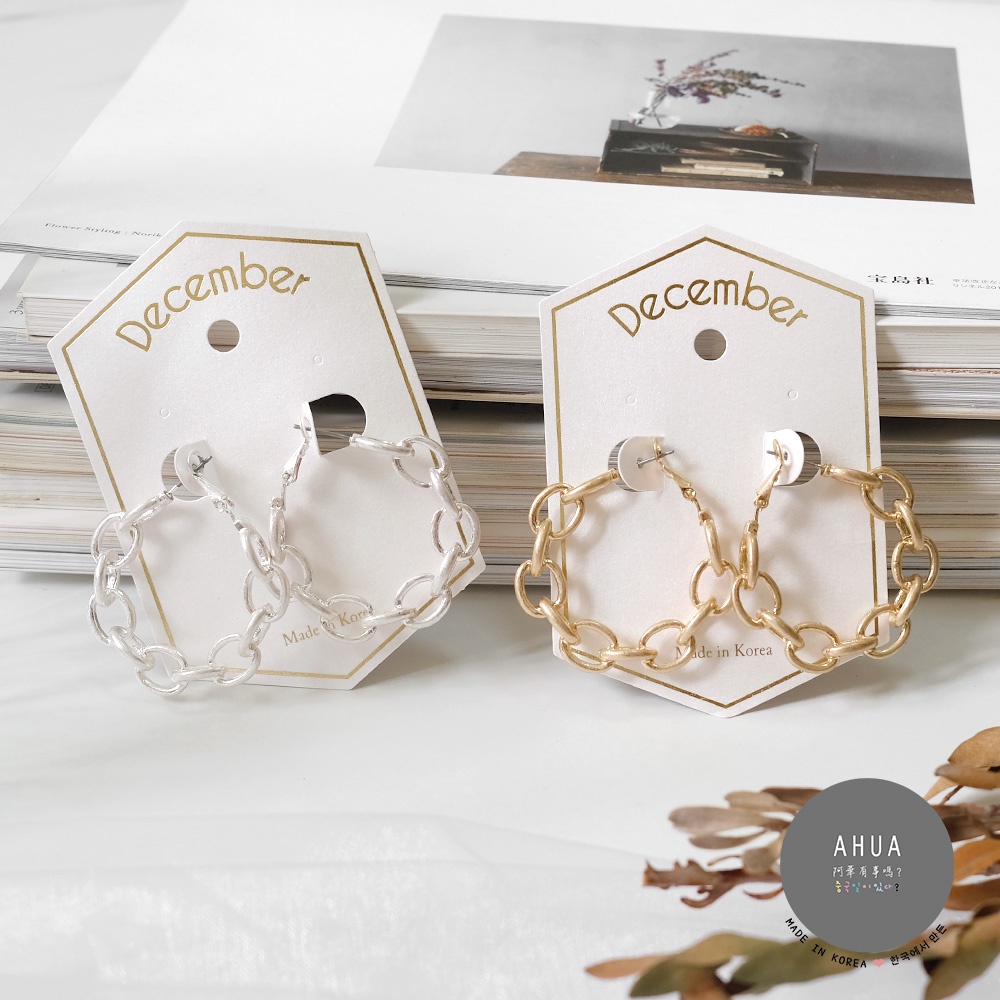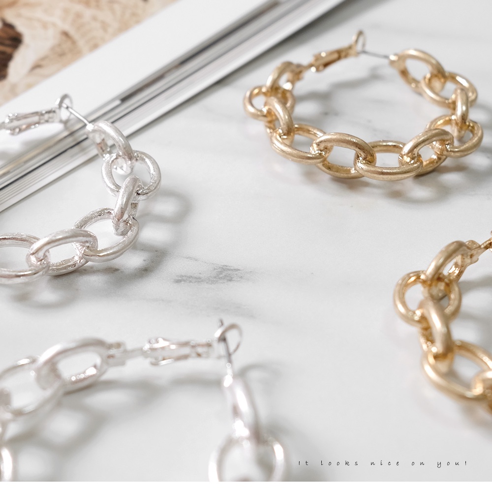 AHUA阿華有事嗎 韓國飾品 霧面質感鎖鏈圈型耳環【A0282】正韓 圈圈 幾何 時尚 簡約 韓妞必備 百搭 基本款耳針